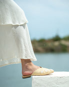Dive into the tranquil beauty of “Sand,” a captivating addition to our “Dance of Water” Collection. These shoes feature the gentle hue of sun–kissed sand, echoing the golden shores of the ocean. Each meticulously placed bead captures the essence of coastal elegance, inviting you to wander along the sunlit beaches of your dreams.