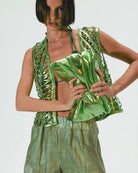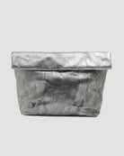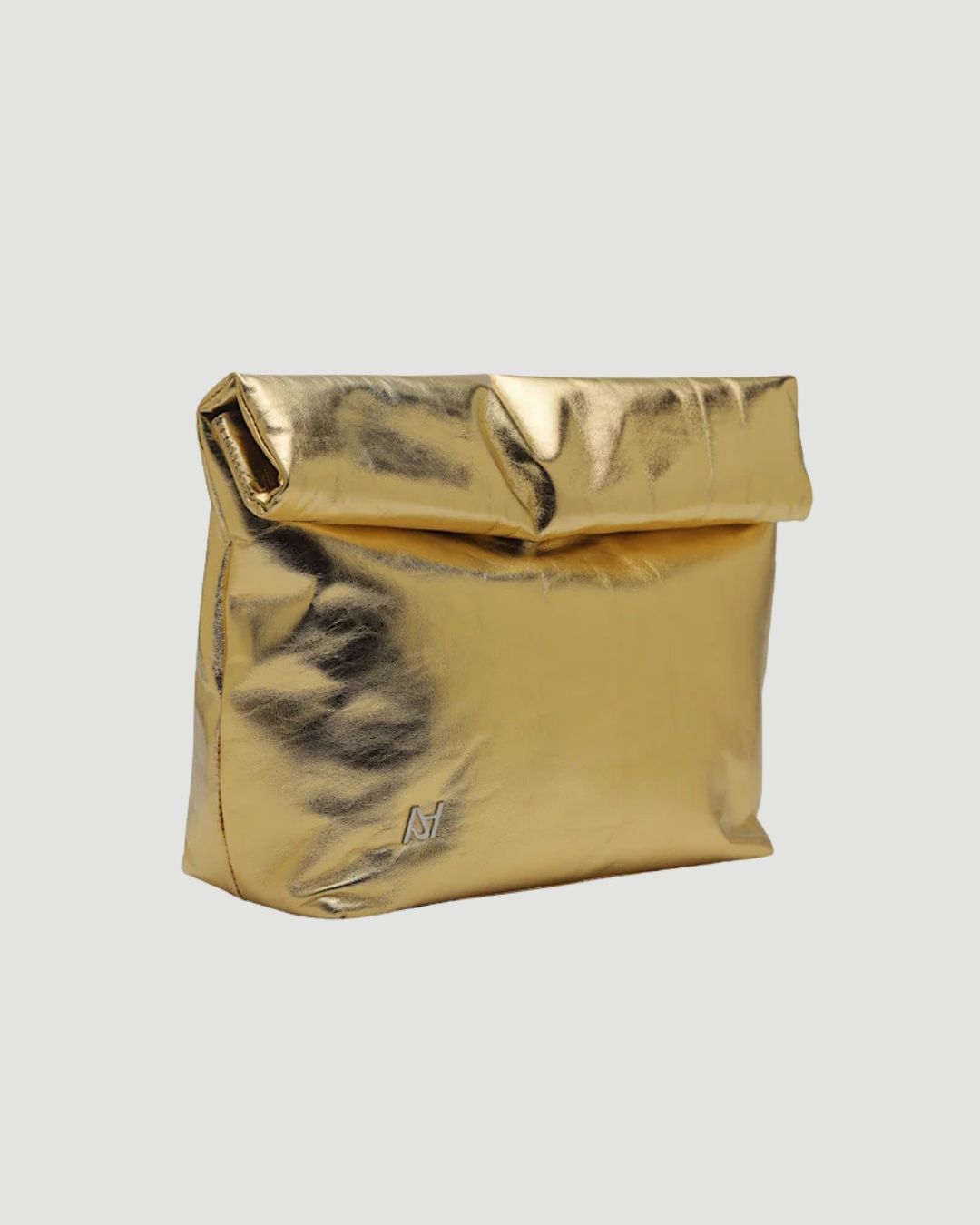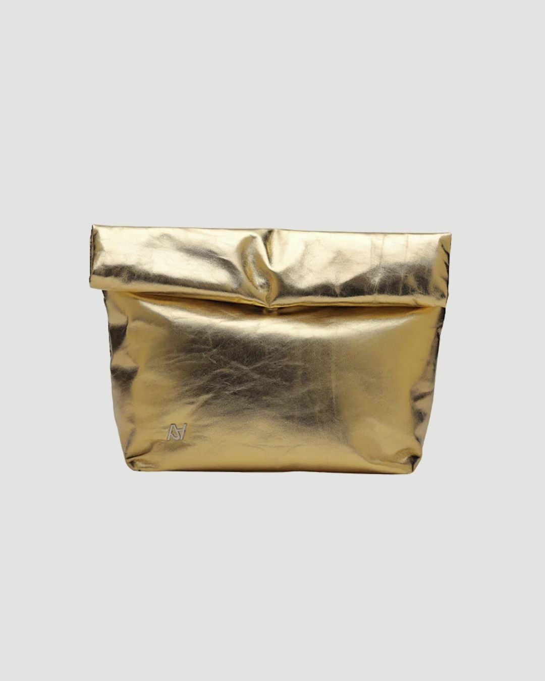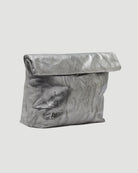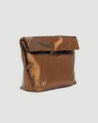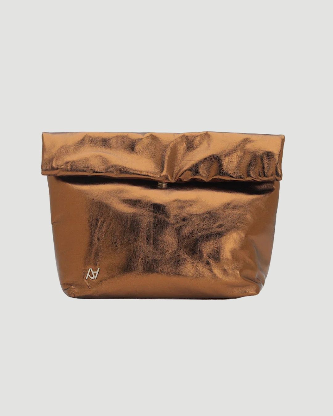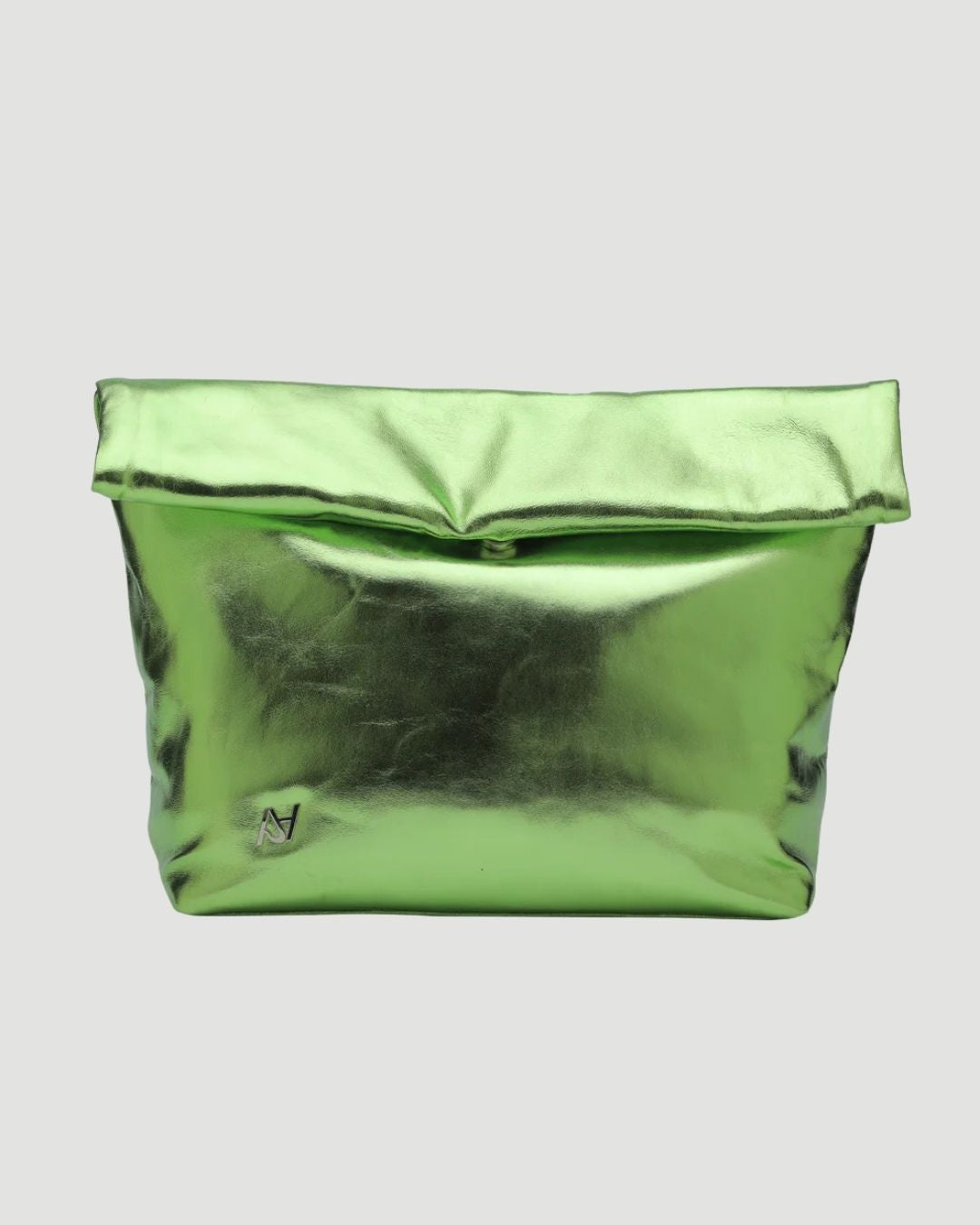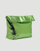 Metallic leather clutch with inside pockets and snap button closure. Available in washed silver, electric green, gold and copper.