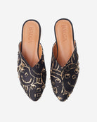 Embrace the artistic touch of the “Head to Toe Collection” with this black pair. The intricate and exclusive hand–painted design by artist Walid Zouari features captivating caricature heads. The handmade embroidery in shimmering gold adds a touch of luxury, making each step you take an expression of art and individuality.