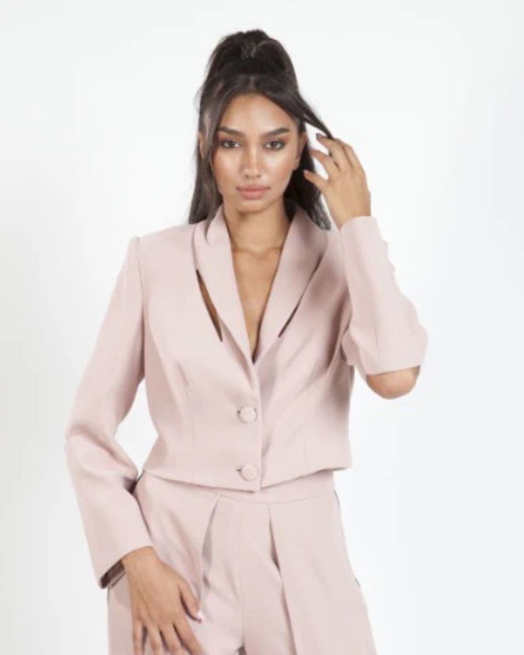 Refine your wardrobe with our cropped nude jacket, tailored to perfection with a structured silhouette and clean lines. Featuring a sharp lapel, double-button closure, and a flattering cropped cut, this piece brings effortless polish to any outfit.