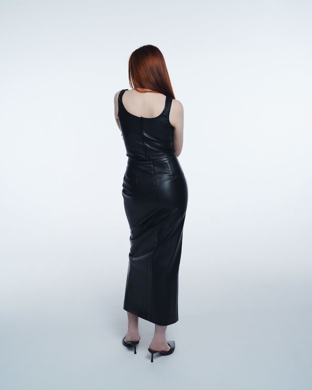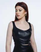 Make a bold statement with our sleek leather top, expertly crafted for the fashion–forward individual. This top features a fitted design that accentuates your silhouette, showcasing the luxurious texture of high–quality synthetic leather. With its minimalistic style and edgy flair, it’s perfect for transitioning from day to night.