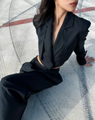 Best selling cropped blazer with mid-weight suiting fabric. Oversized fit with peak lapels.