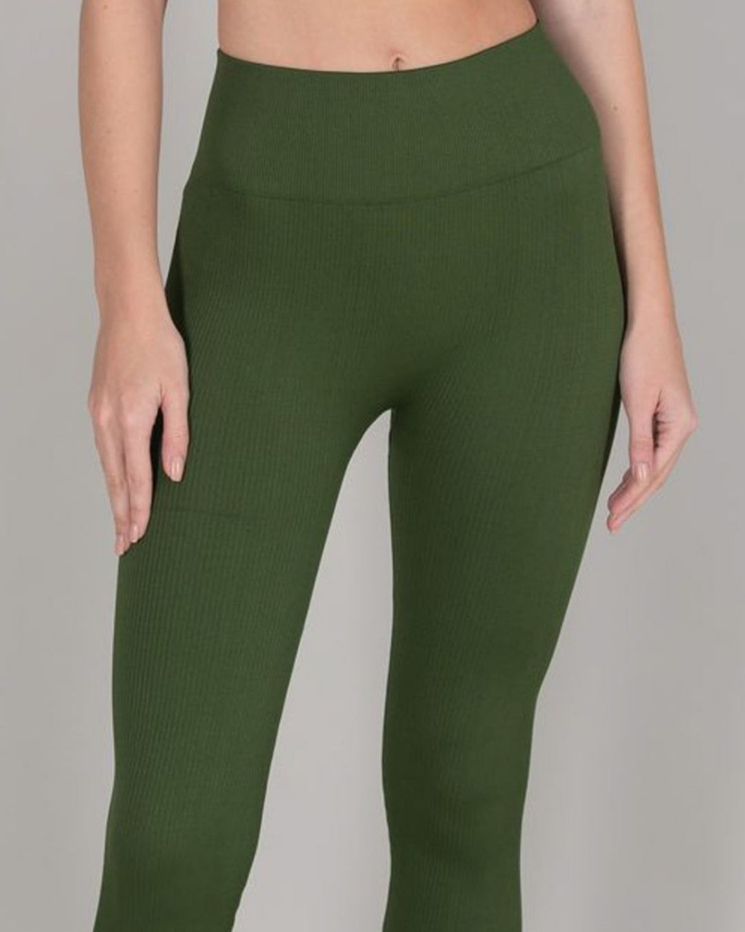 This leggings is best paired with our ribbed V back bra in Green Olive.