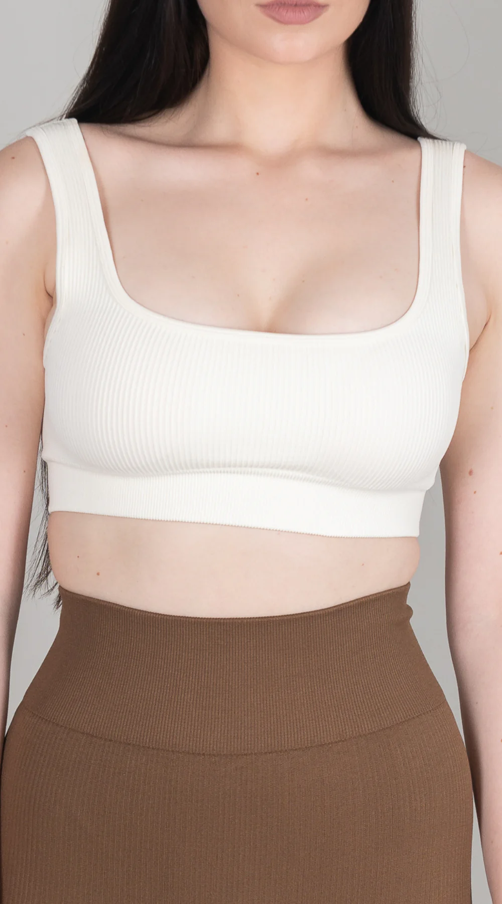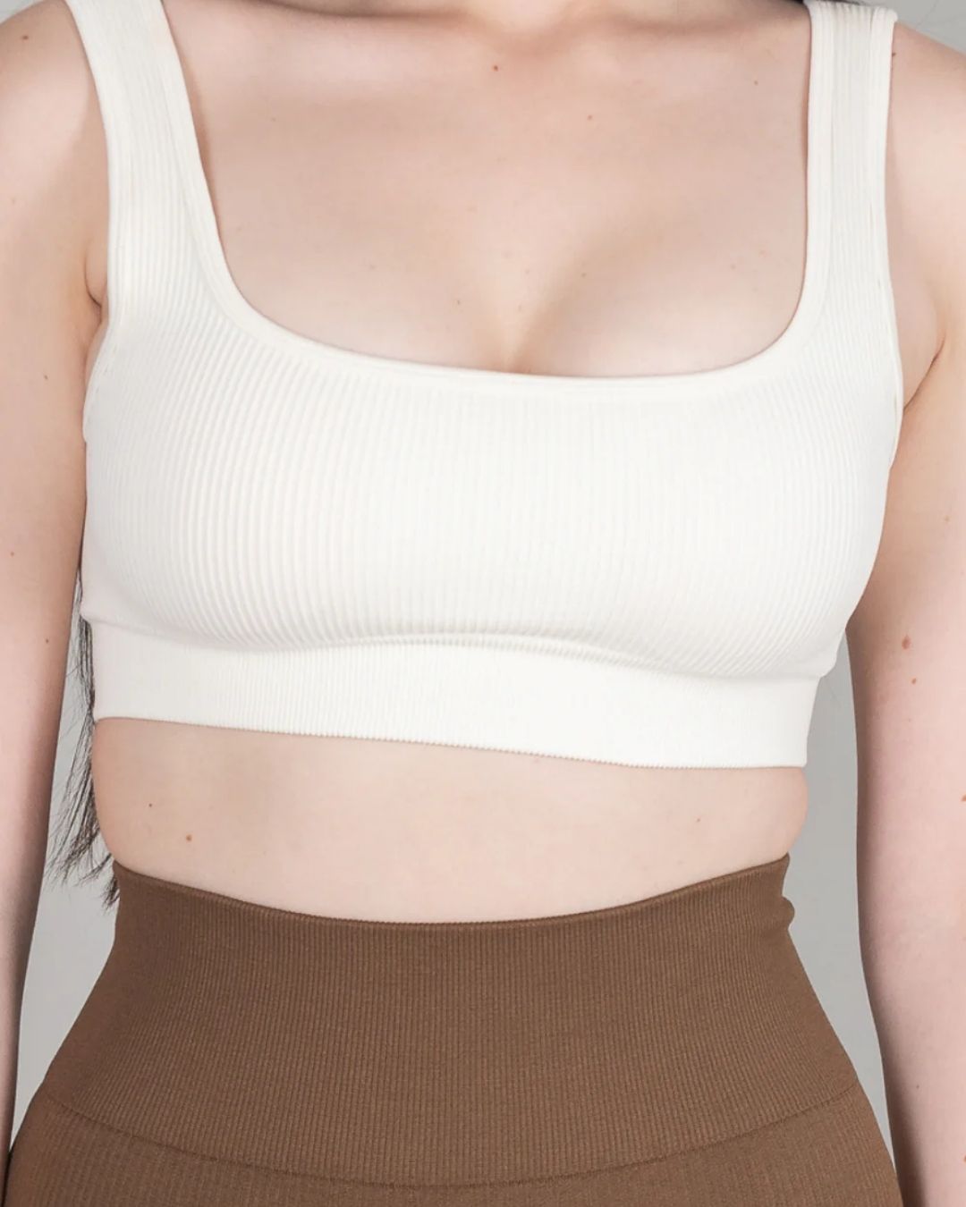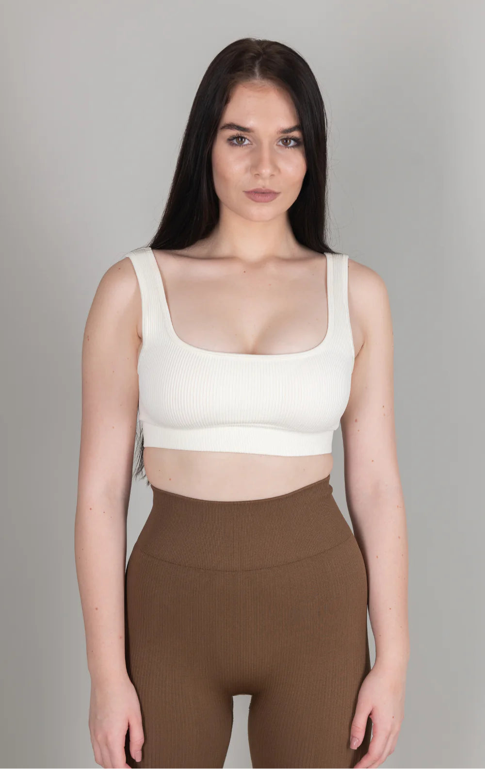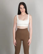 This bra is best paired with our ribbed leggings in Coffee.