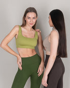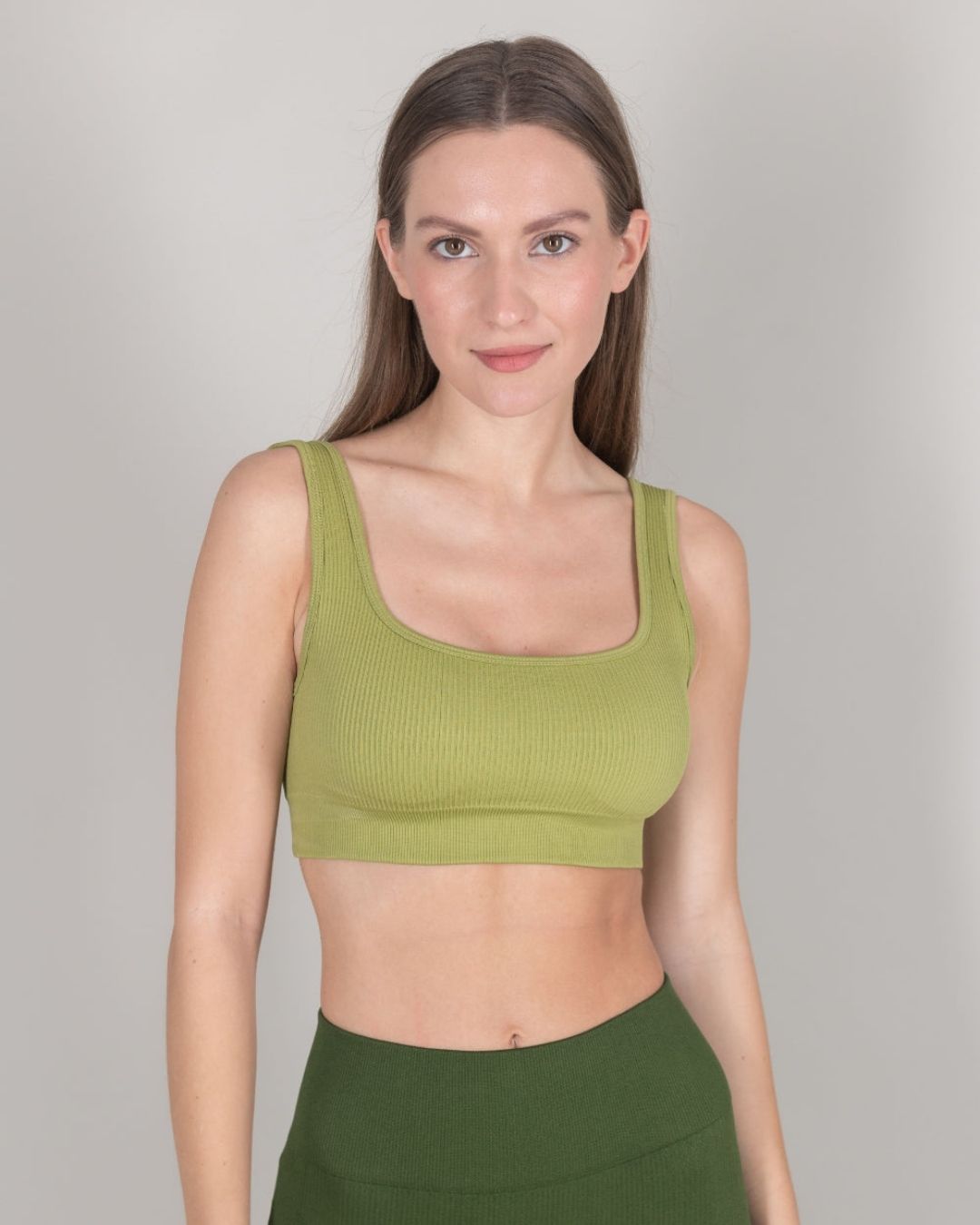 This bra is best paired with our ribbed leggings in Chive.