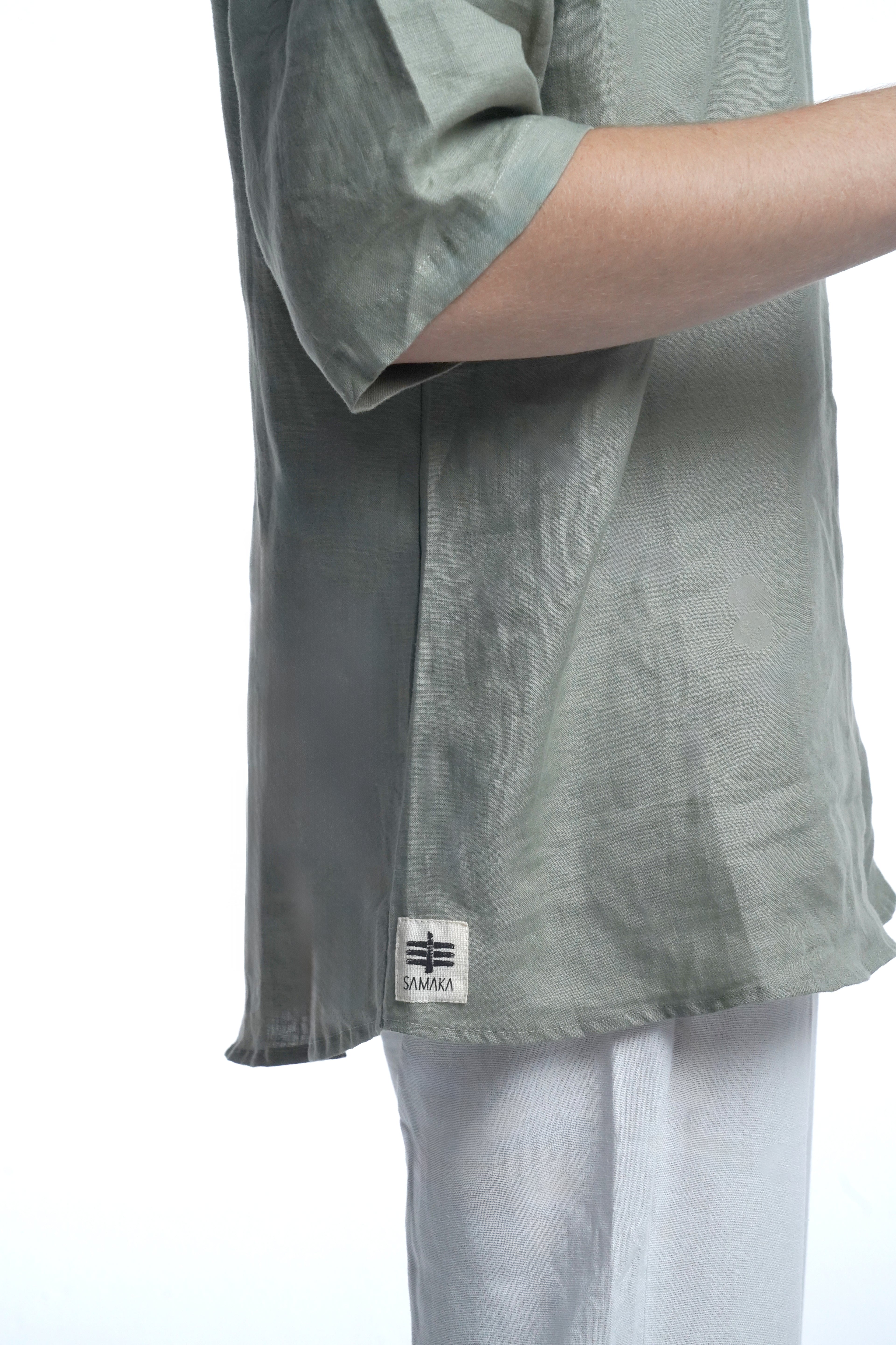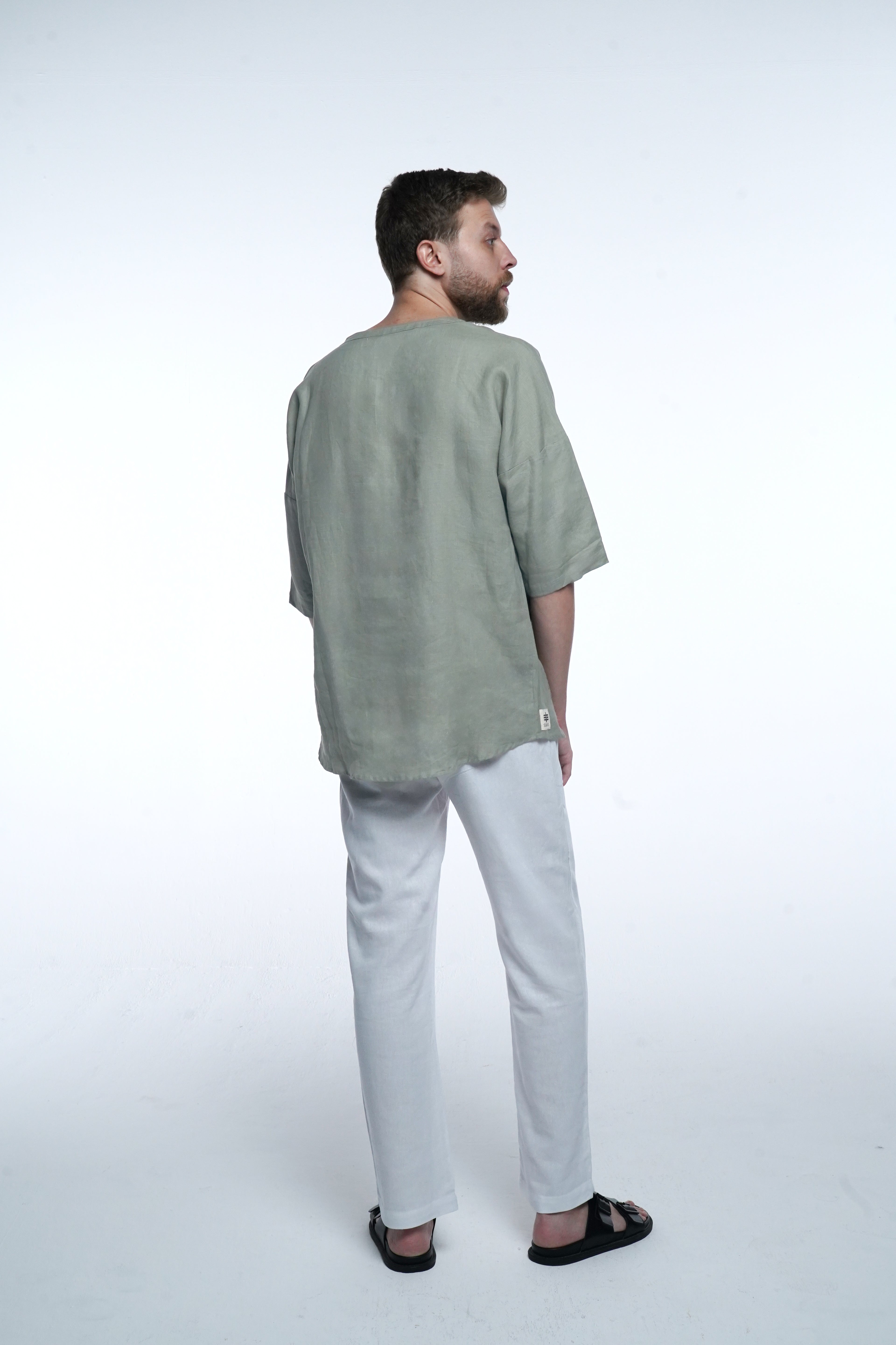 Crafted from breathable linen, this shirt combines a relaxed fit with subtle sophistication, featuring a minimalist chest pocket that adds both style and functionality.