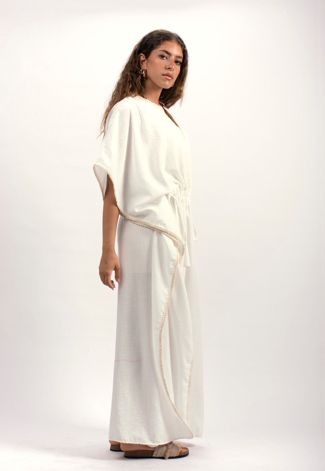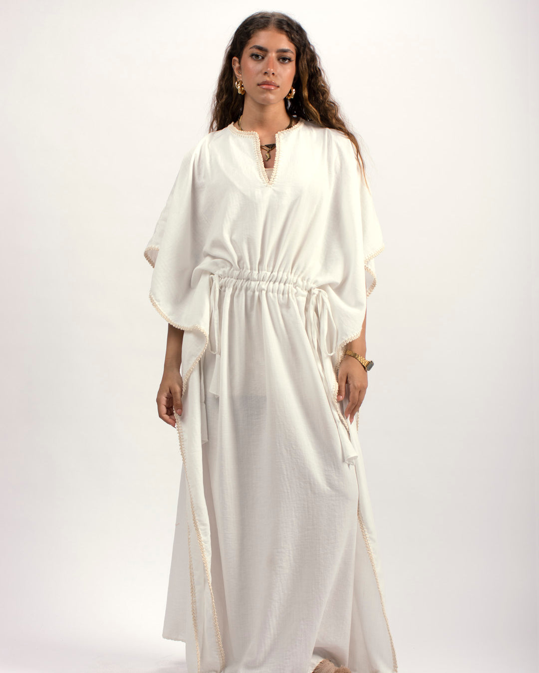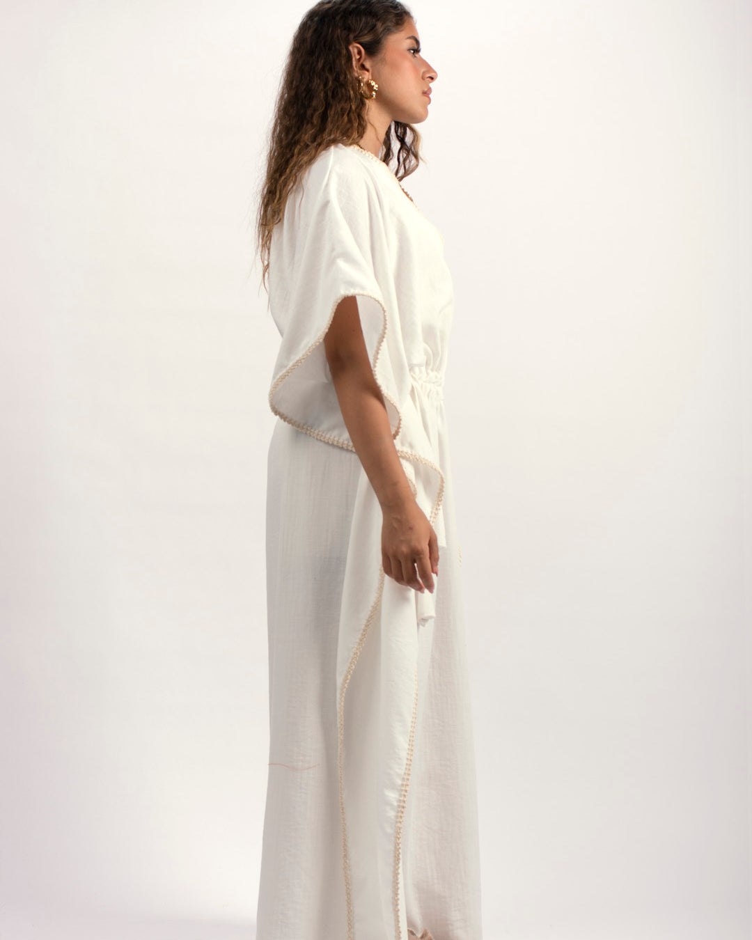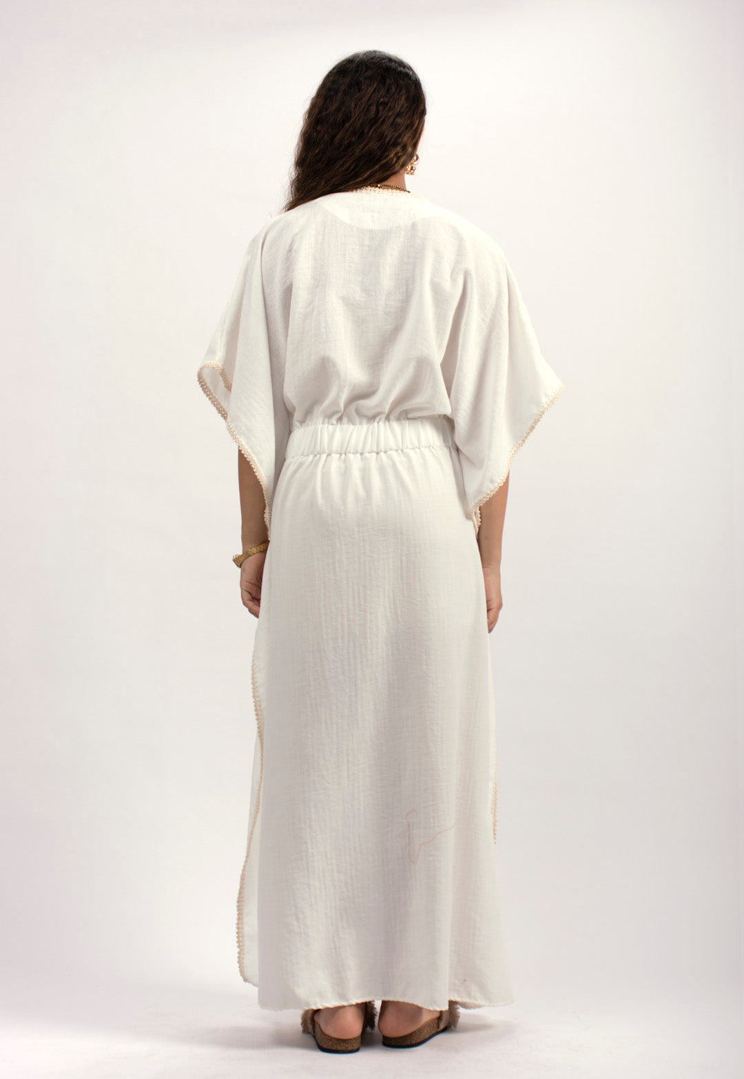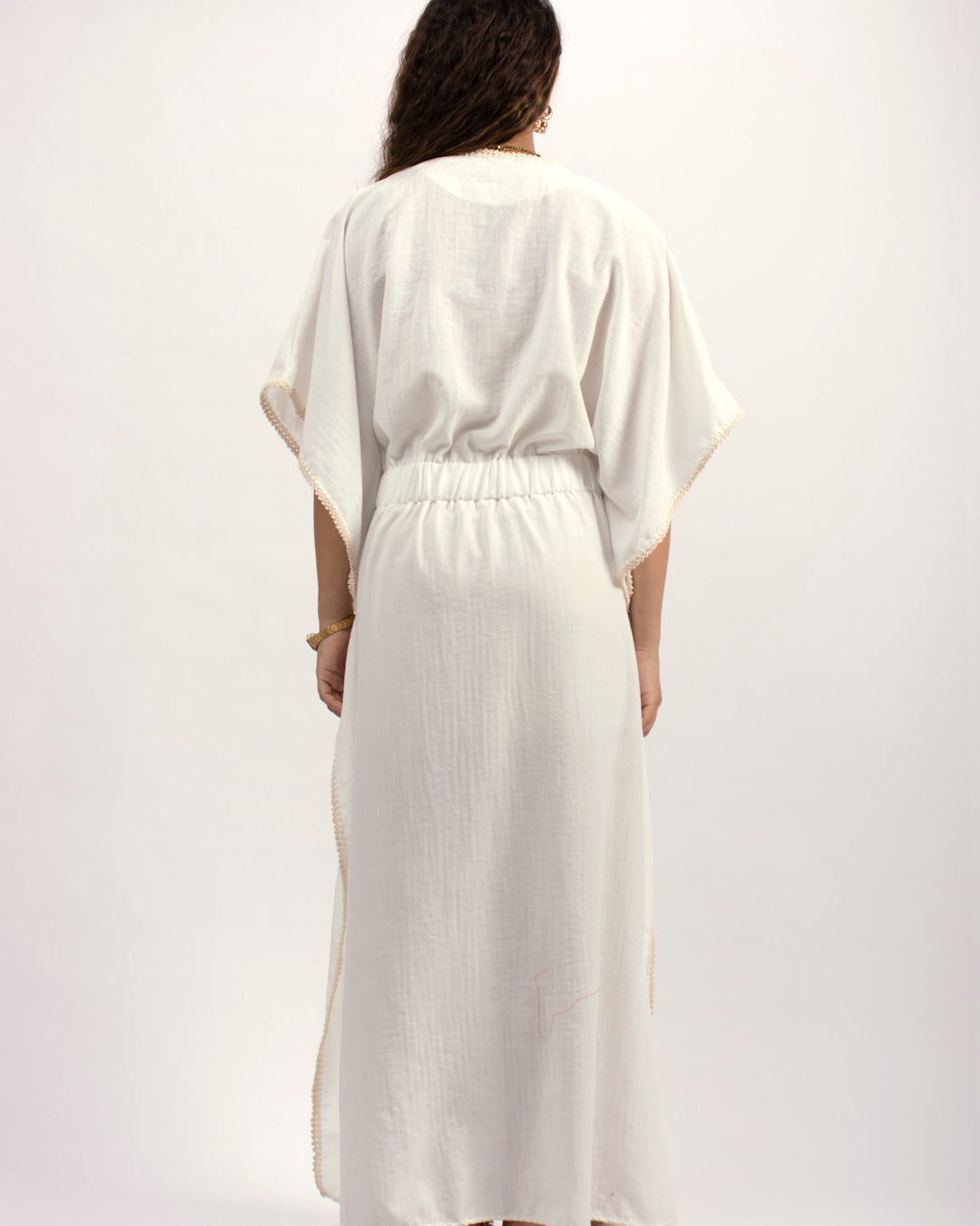 Handtrimmed Kaftan Dress – White
