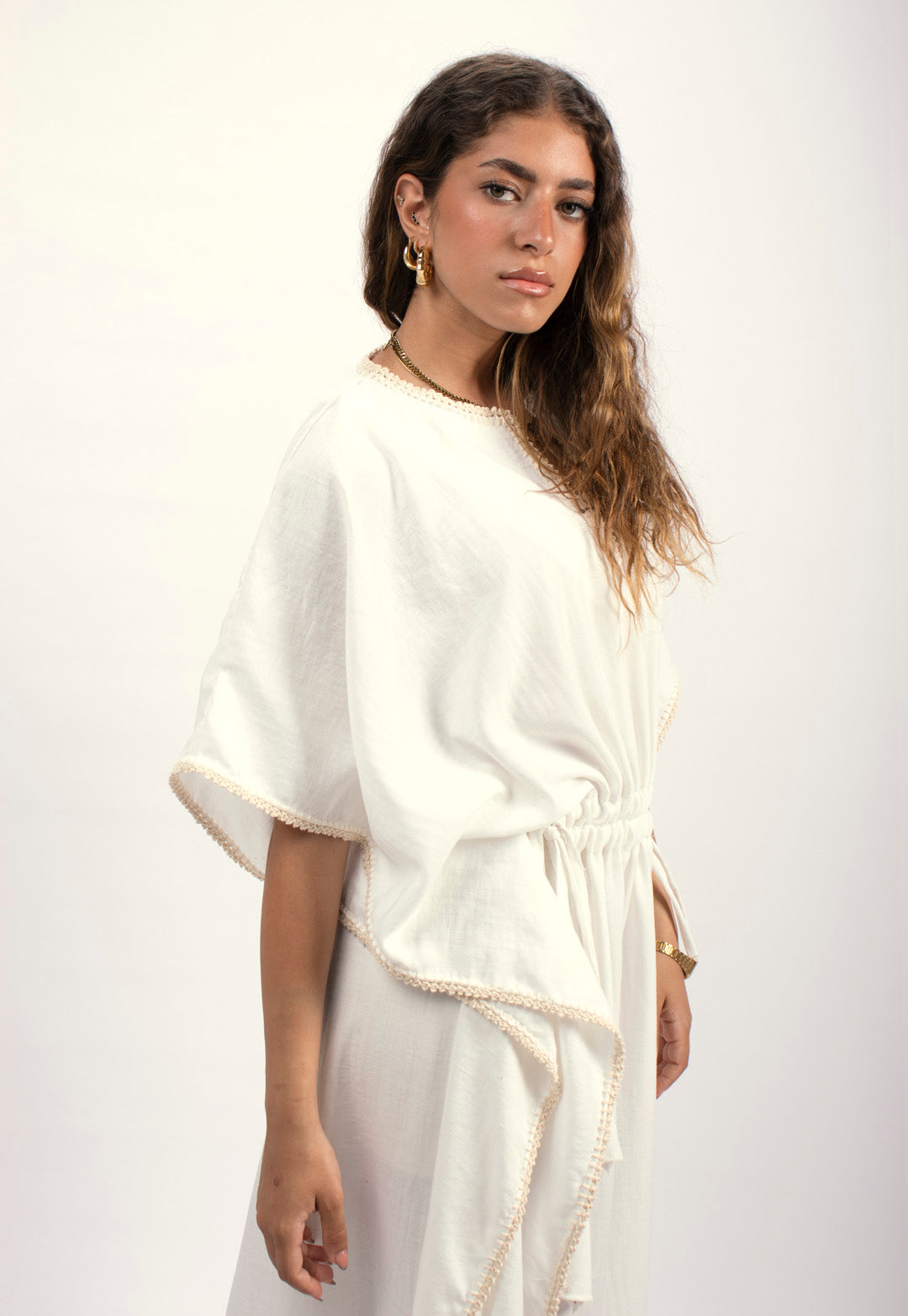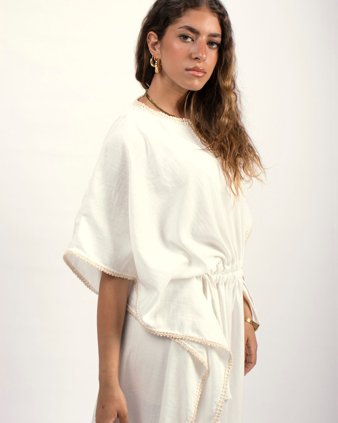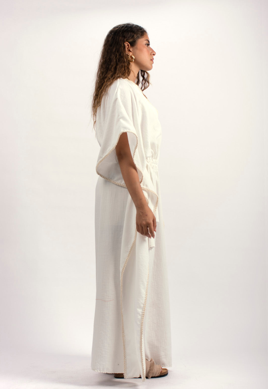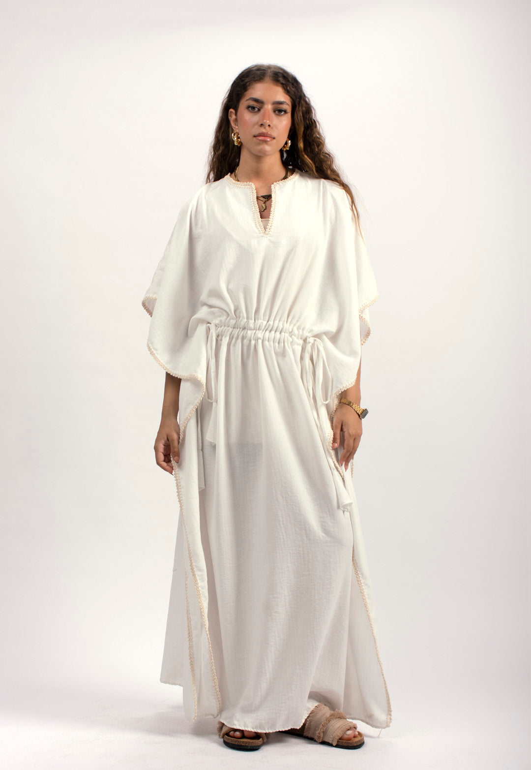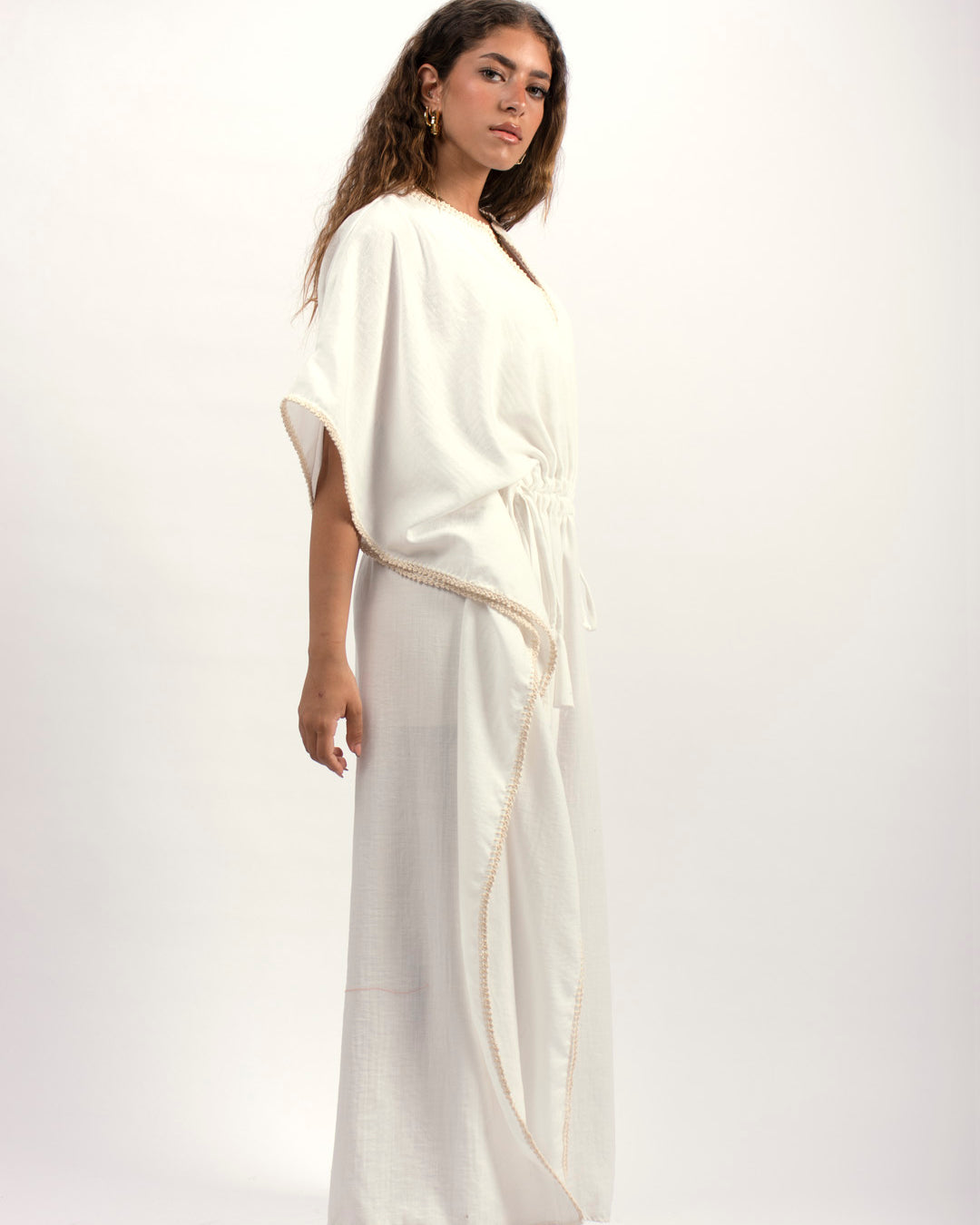 Handtrimmed Kaftan Dress – White