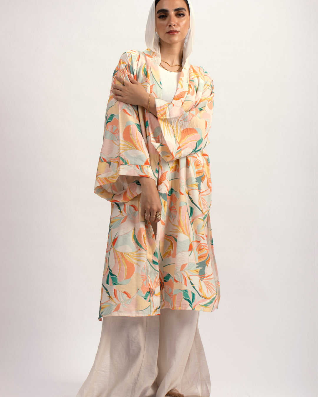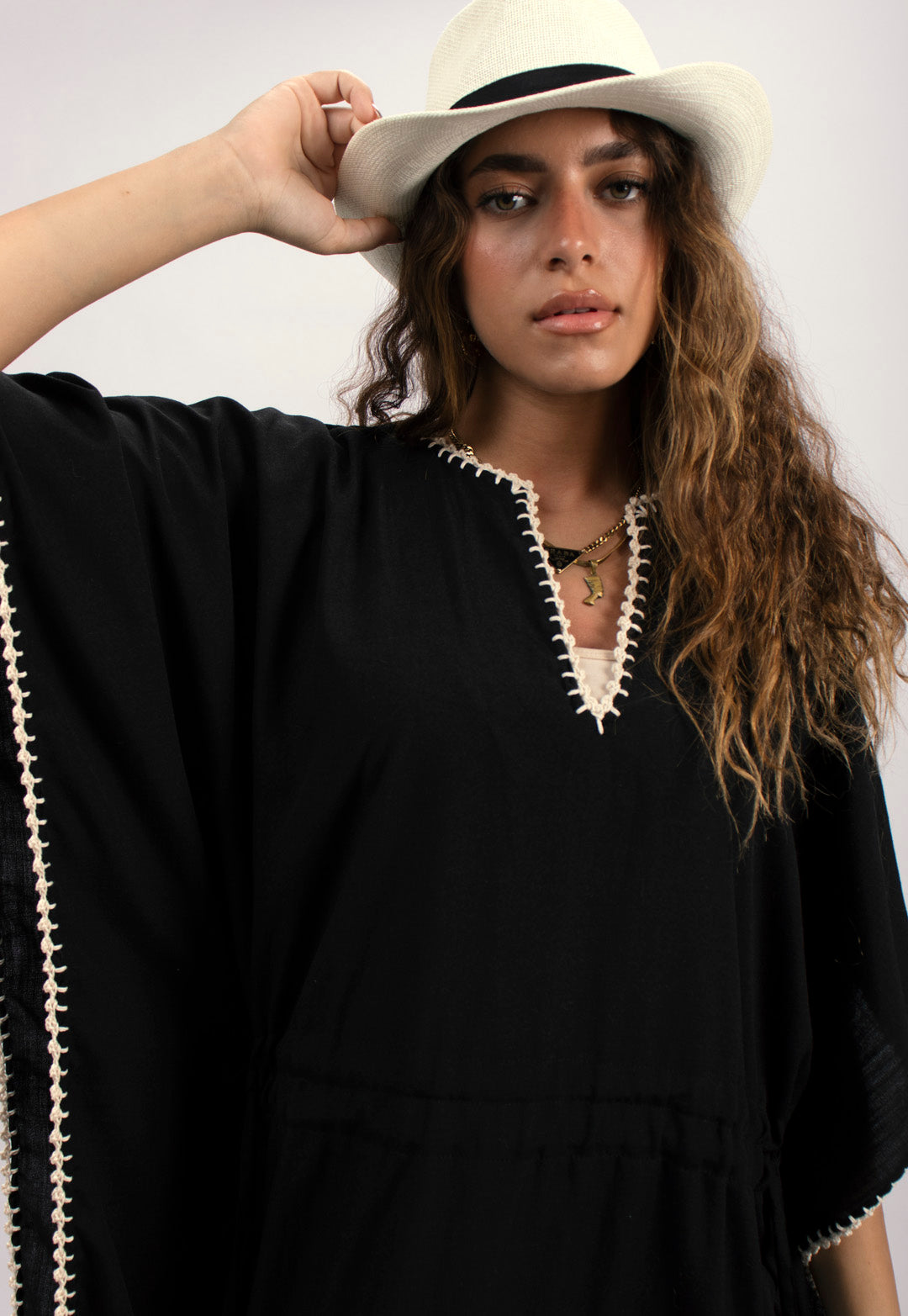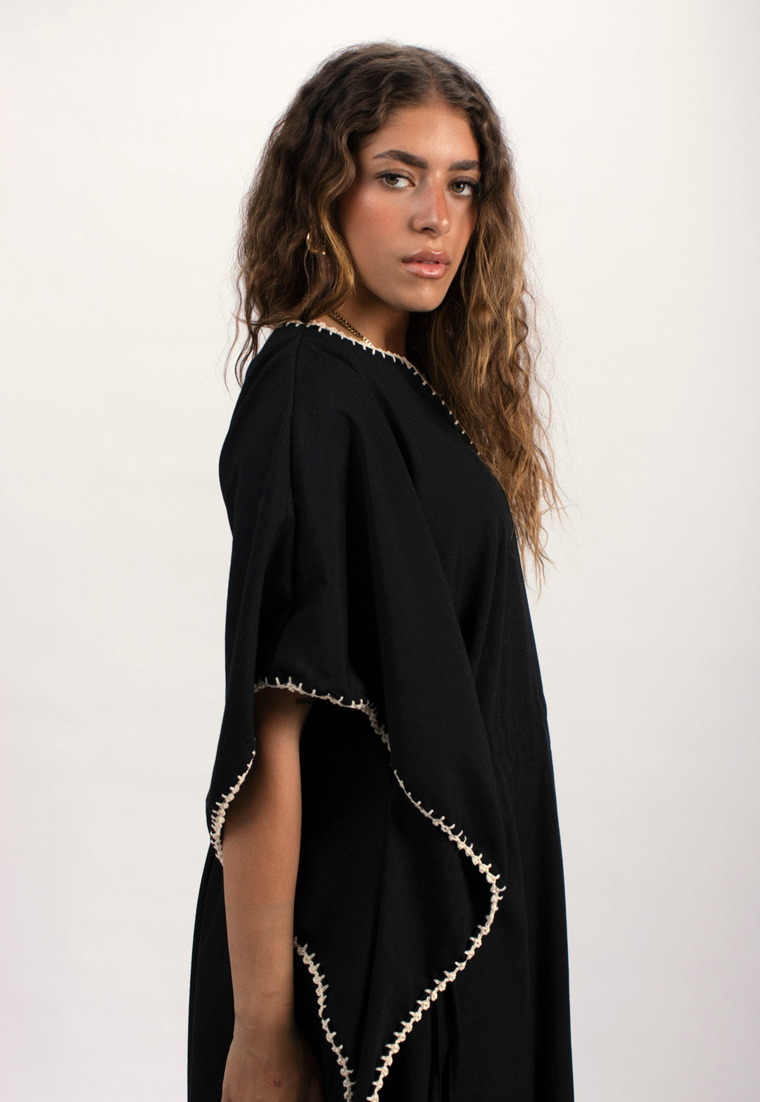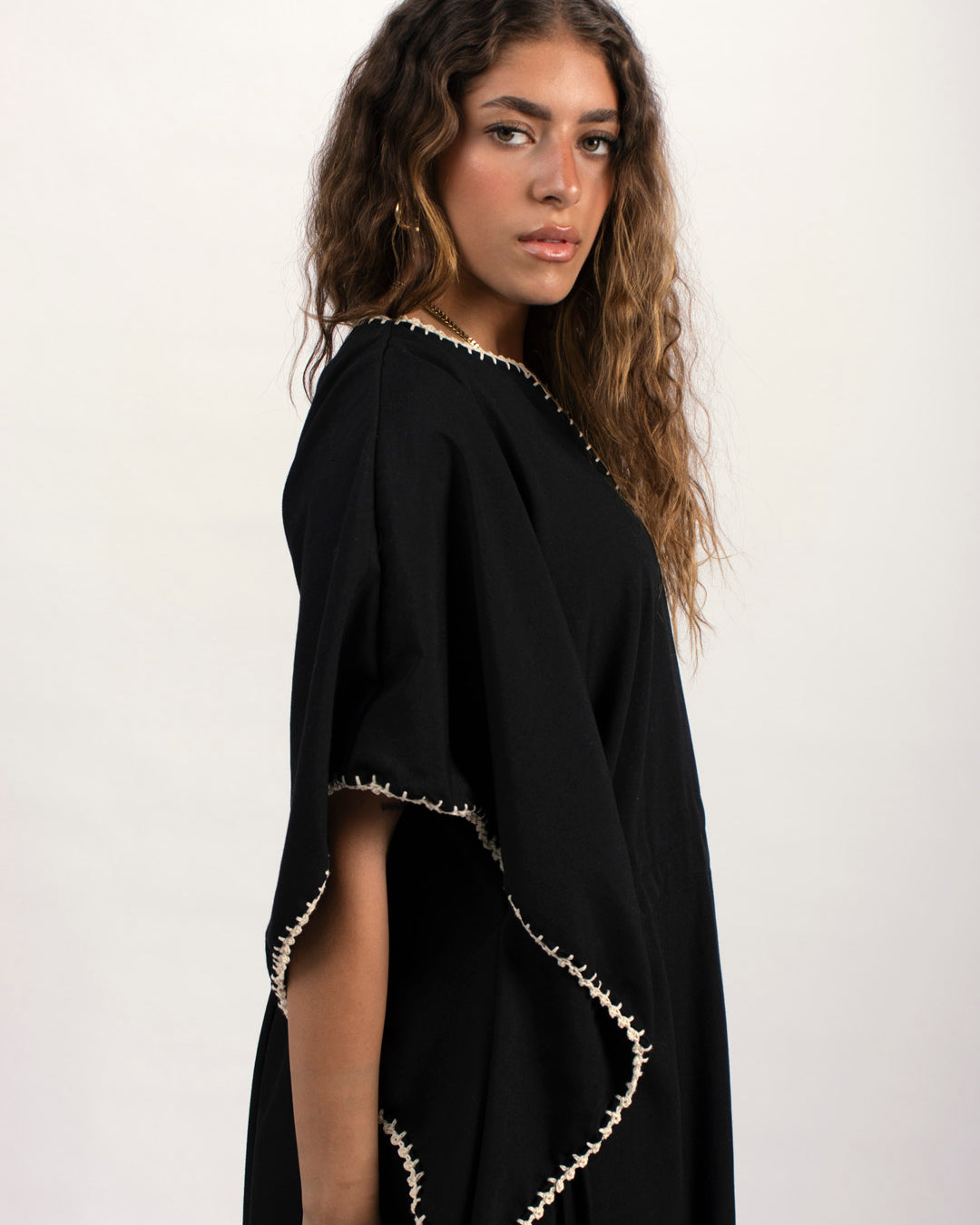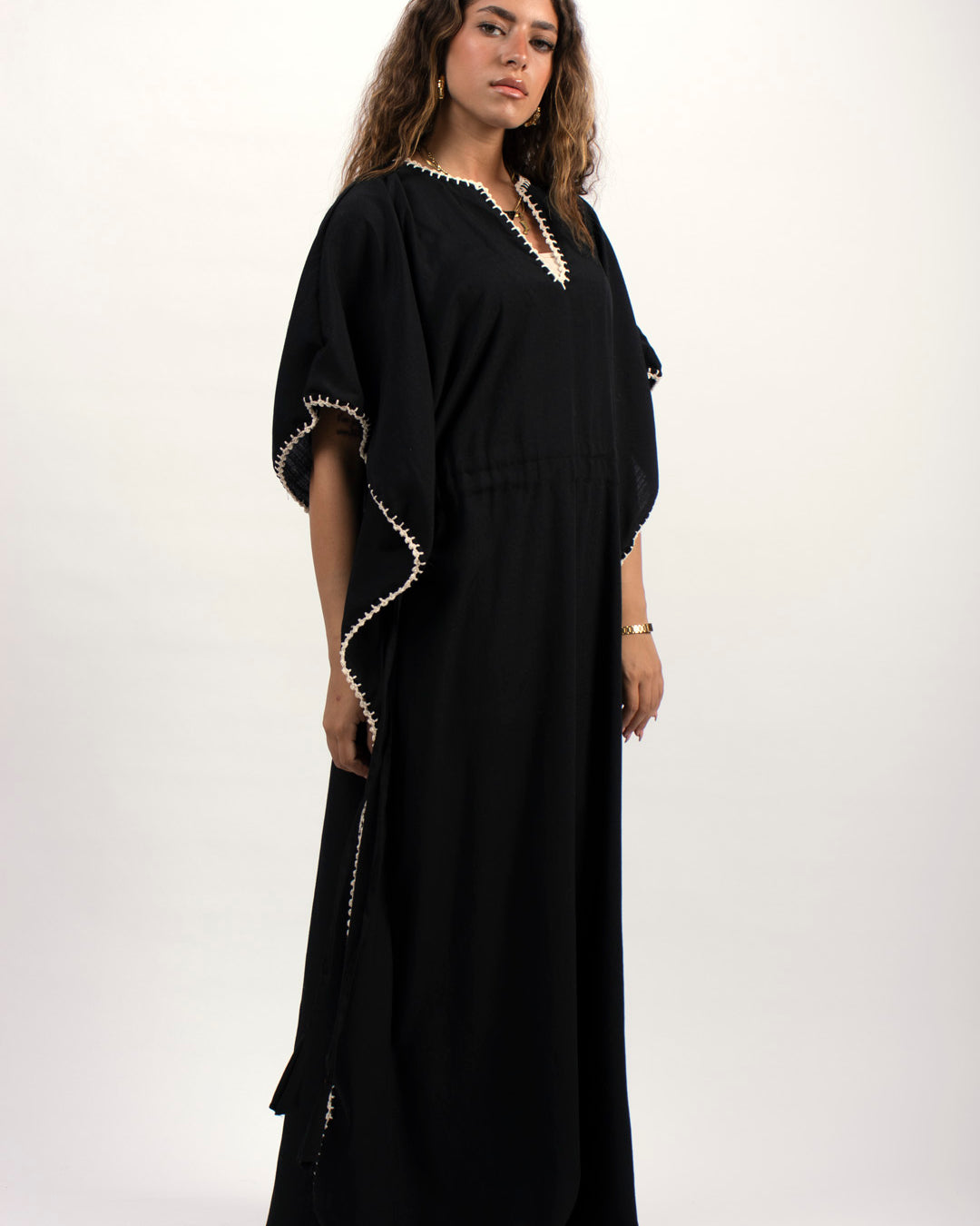 Handtrimmed Kaftan Dress – White