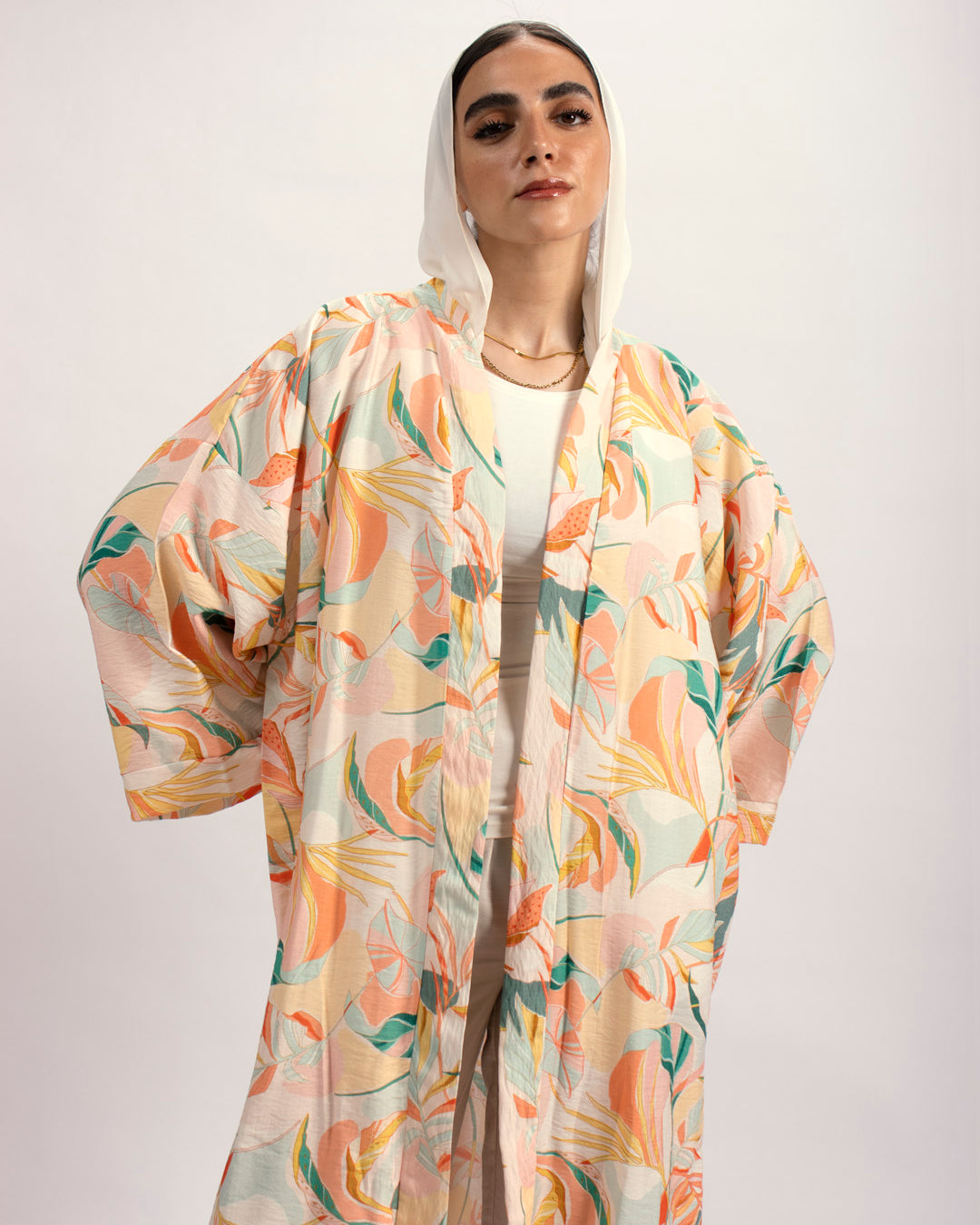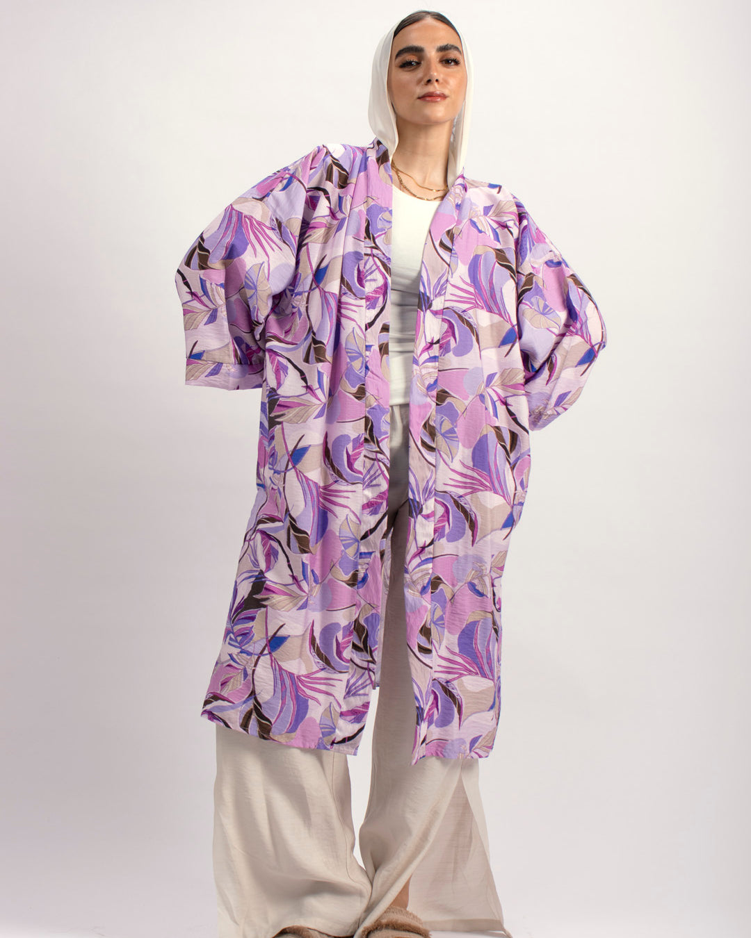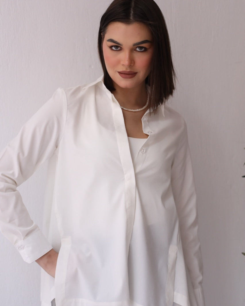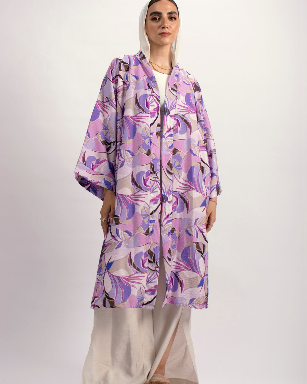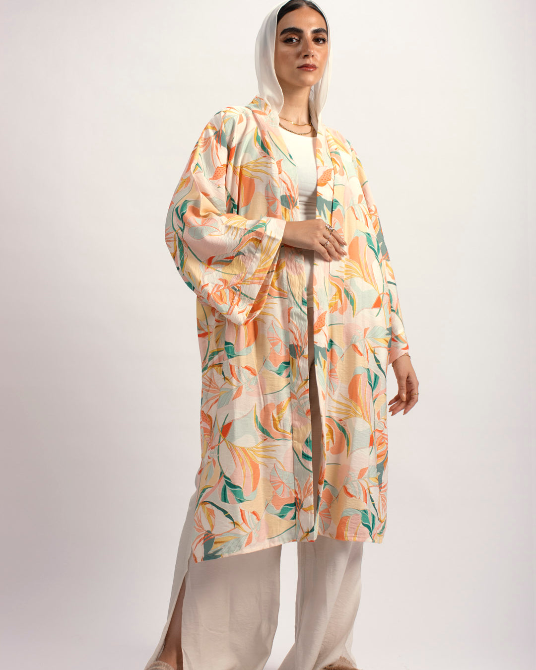Handtrimmed Kaftan Dress – White