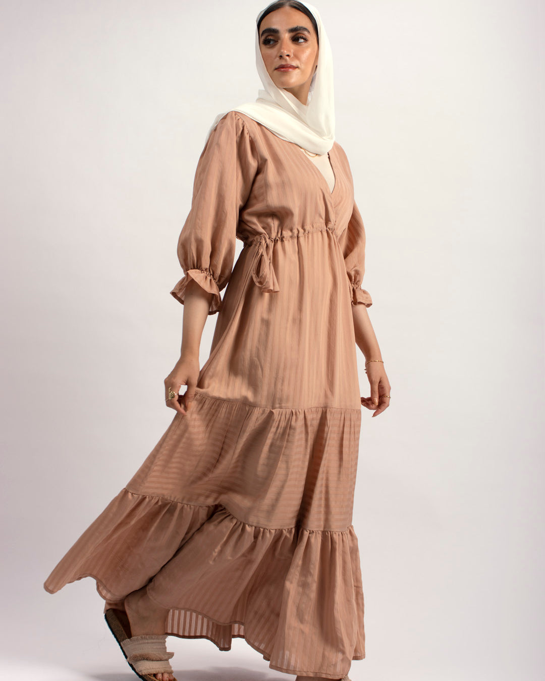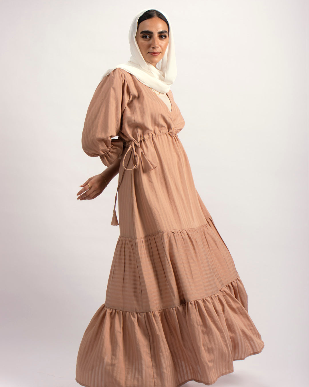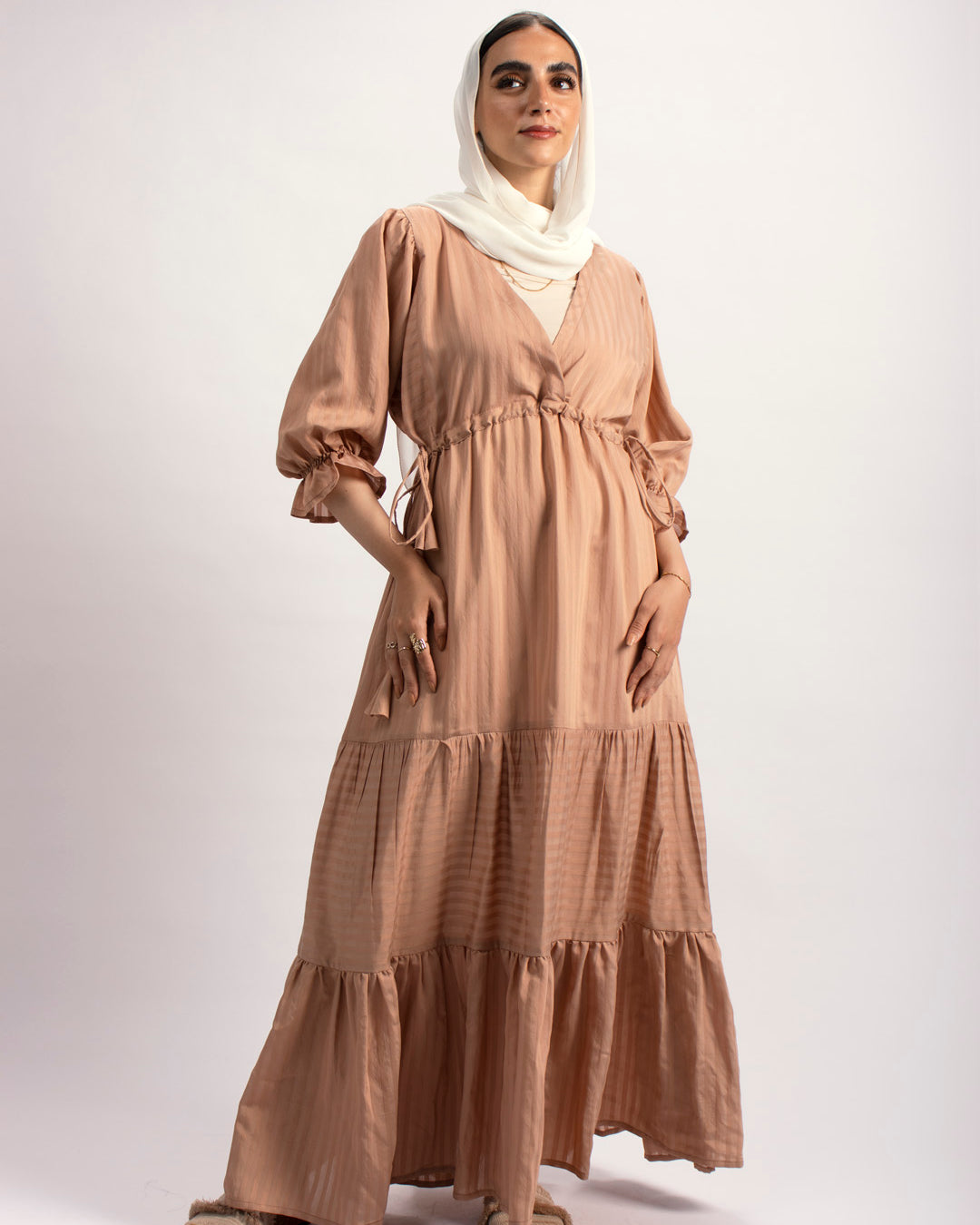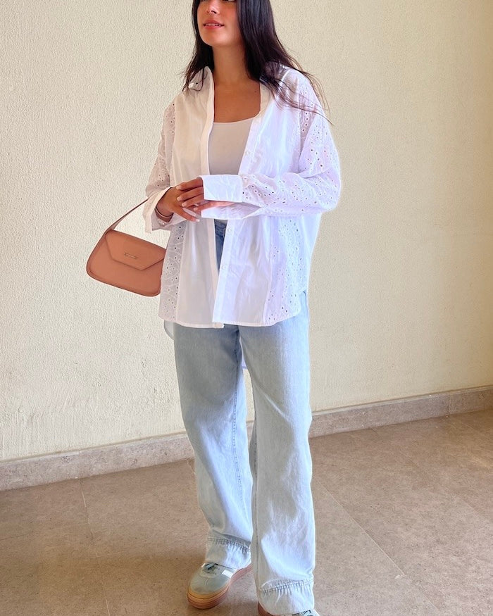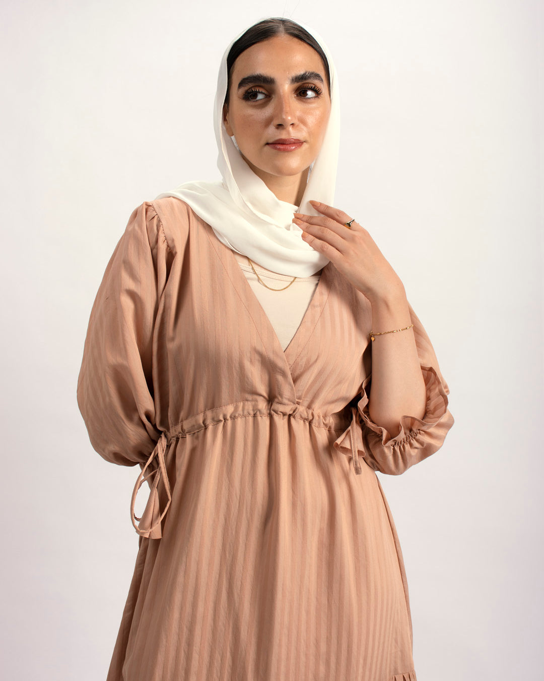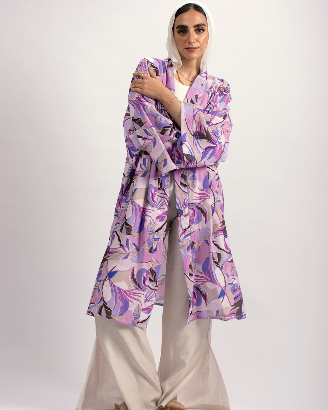 Handtrimmed Kaftan Dress – White