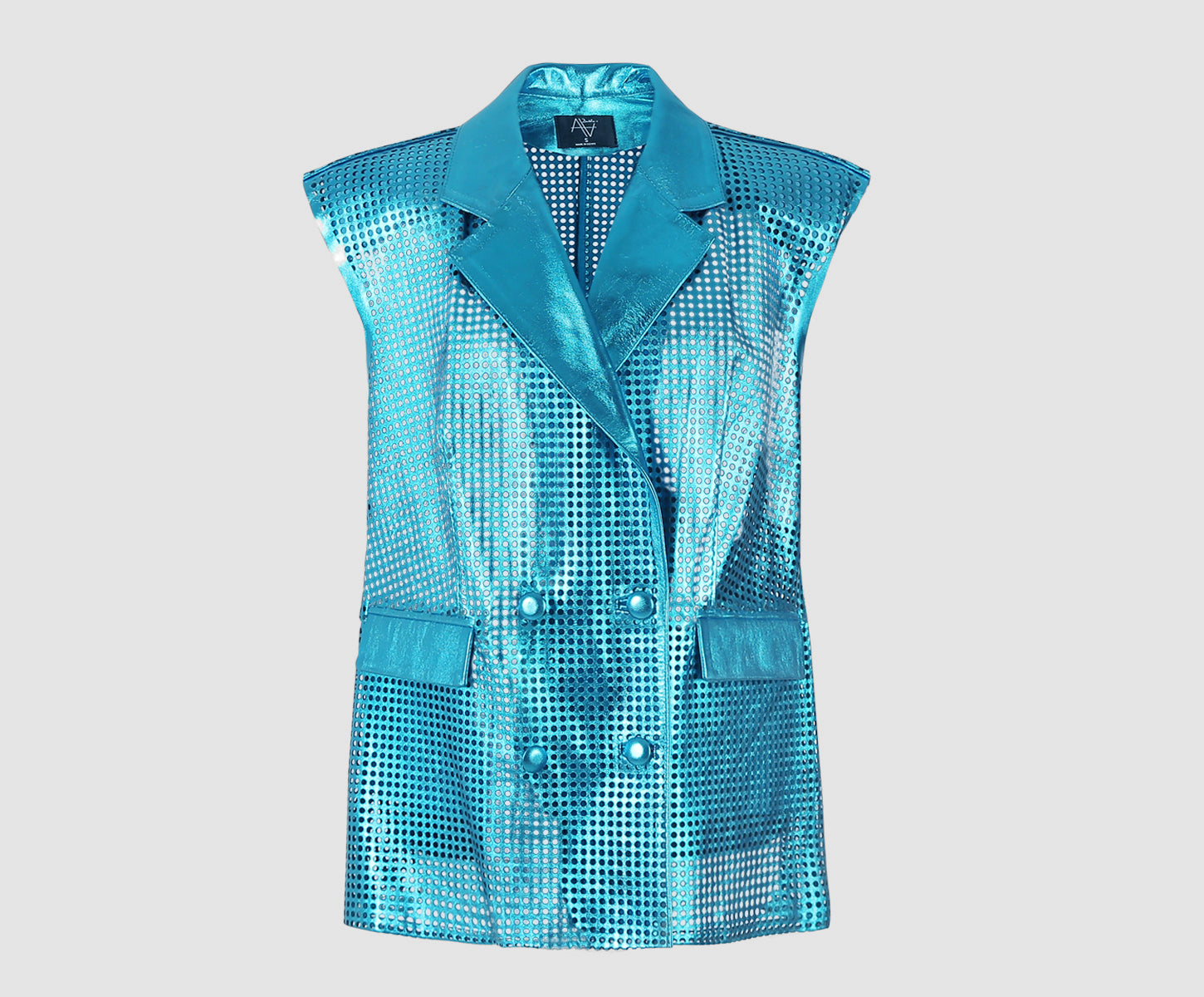 The Ebony collection is one of Double A’s most popular collection. The Ebony blazer vest features laser cut details, front flap pockets, double breasted button fastening and padded shoulders to give you a bolder look. Style it with the Ebony shorts for extra cool look.