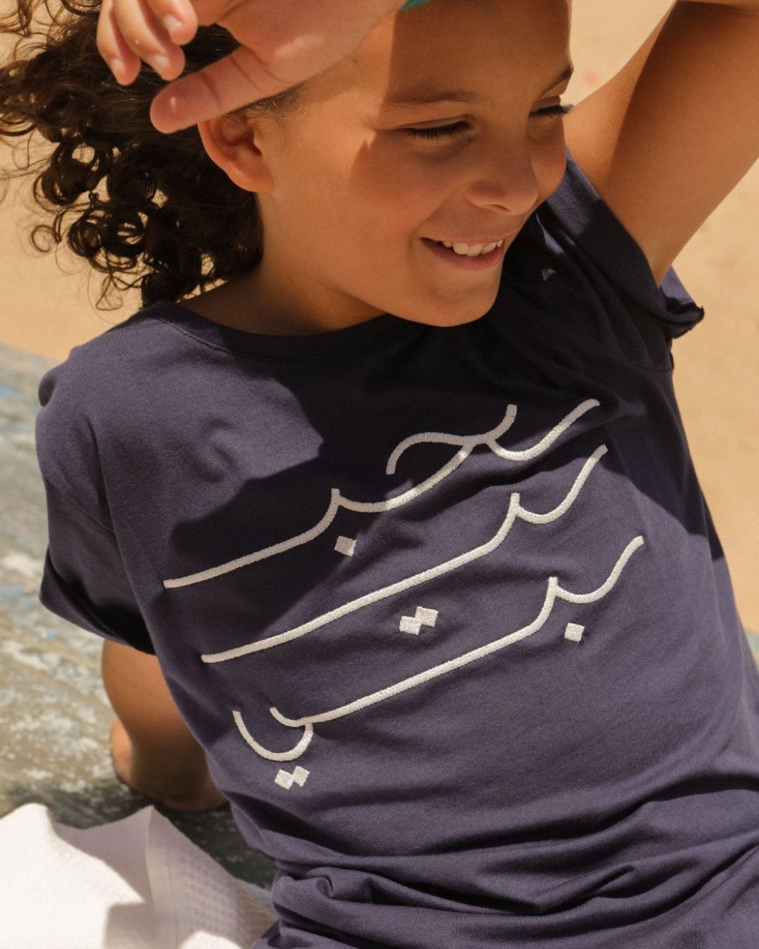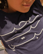 The unisex LYOUM T-shirt, soft, pleasant, and iconic, now in 100% organic cotton! Featuring Habibi (My Love in Arabic) embroidery in calligraphy on the front, this classic piece has a straight cut, round neck, and is crafted from light, ultra-soft cotton in a timeless navy blue.