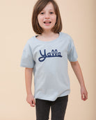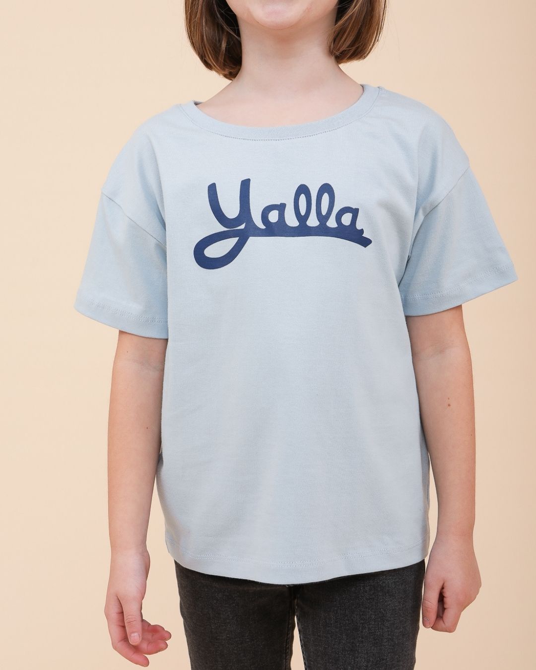 With a perfect straight cut, ultra-soft cotton material, and short sleeves, this kids tee is incredibly pleasant to the touch. The round neck and bold 'Yalla' screen printing on the front make it both comfortable and stylish.