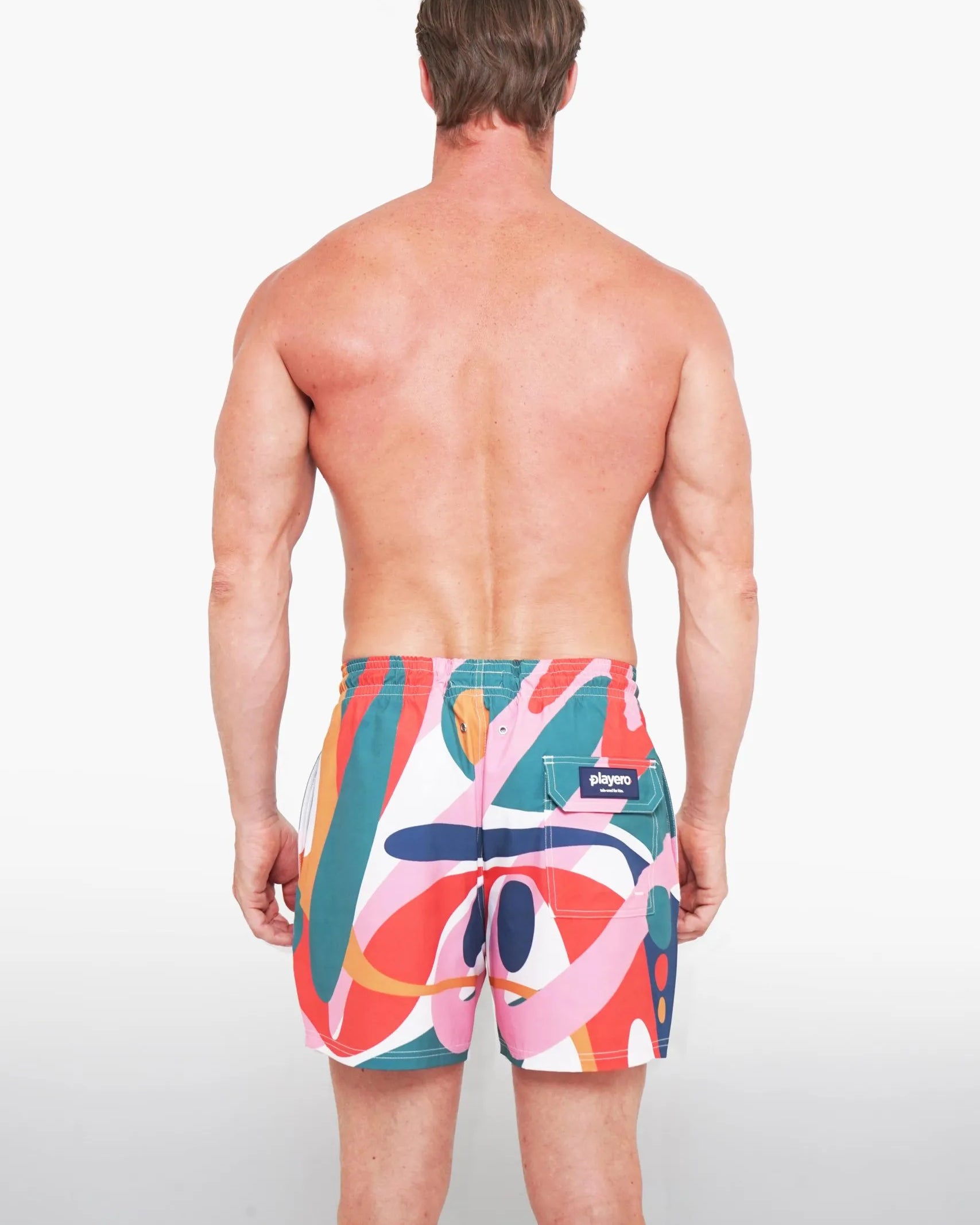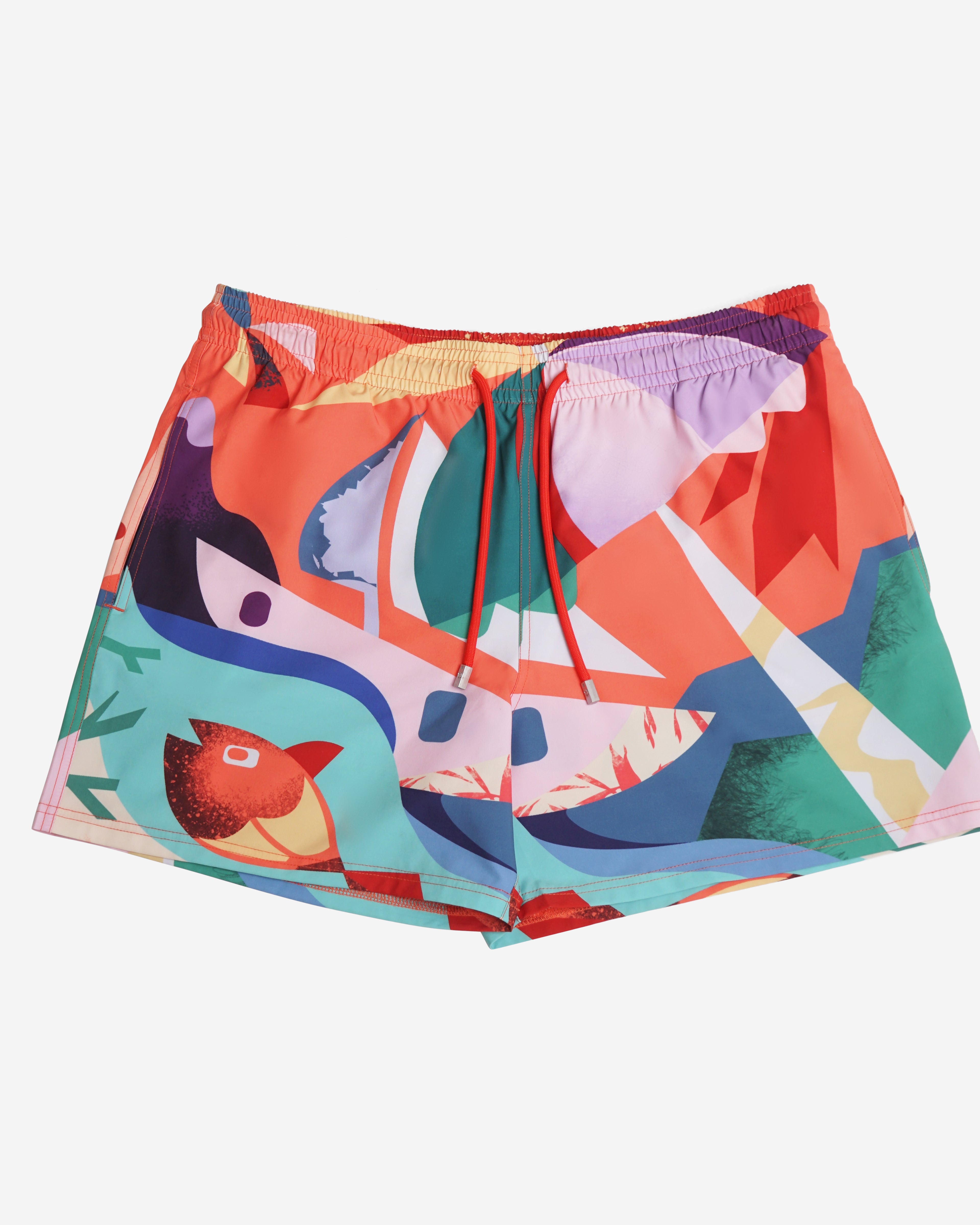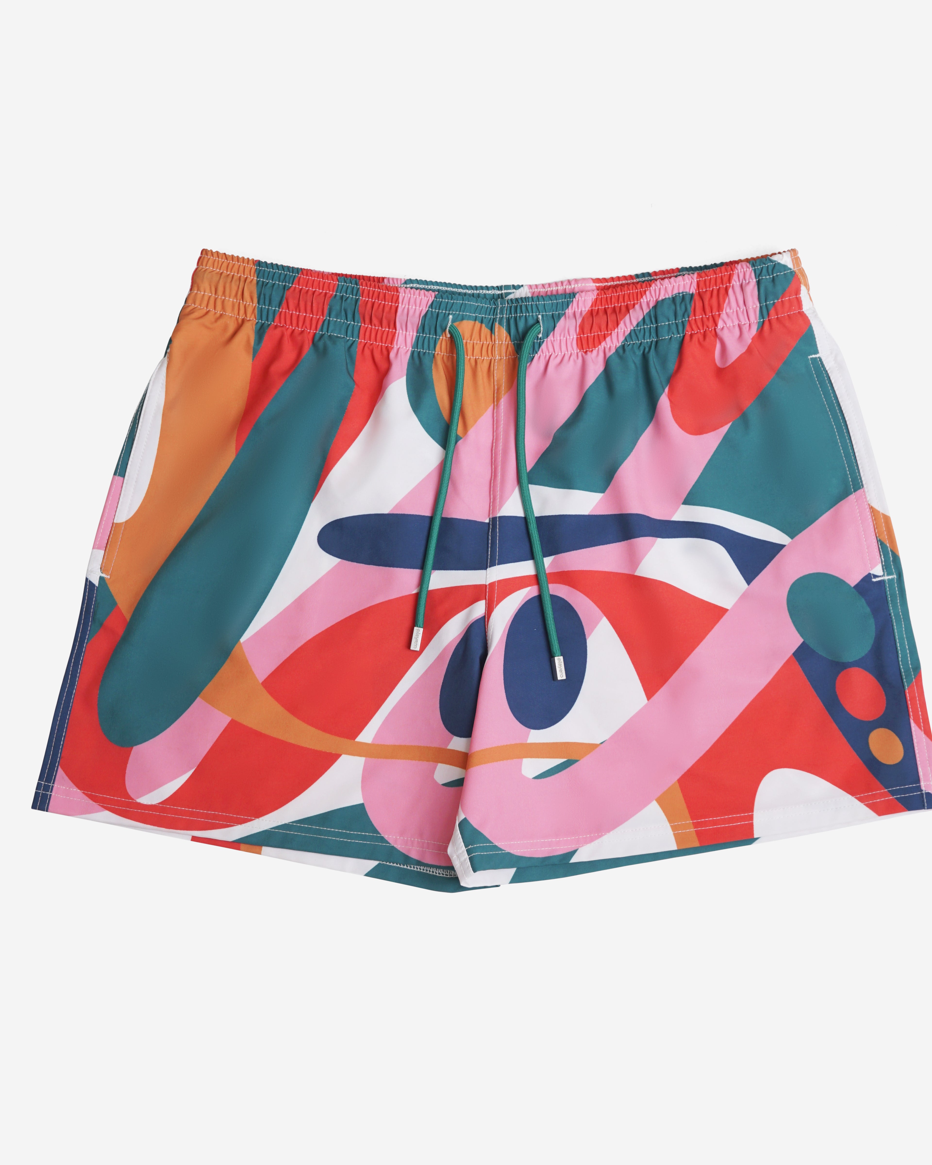 “Wonderland” narrates the symbolic characters and setting of this fairytale phenomenon. From the Queen of Hearts to the Mad Hatter, their geometric world and colorful personas are reflected in this design.