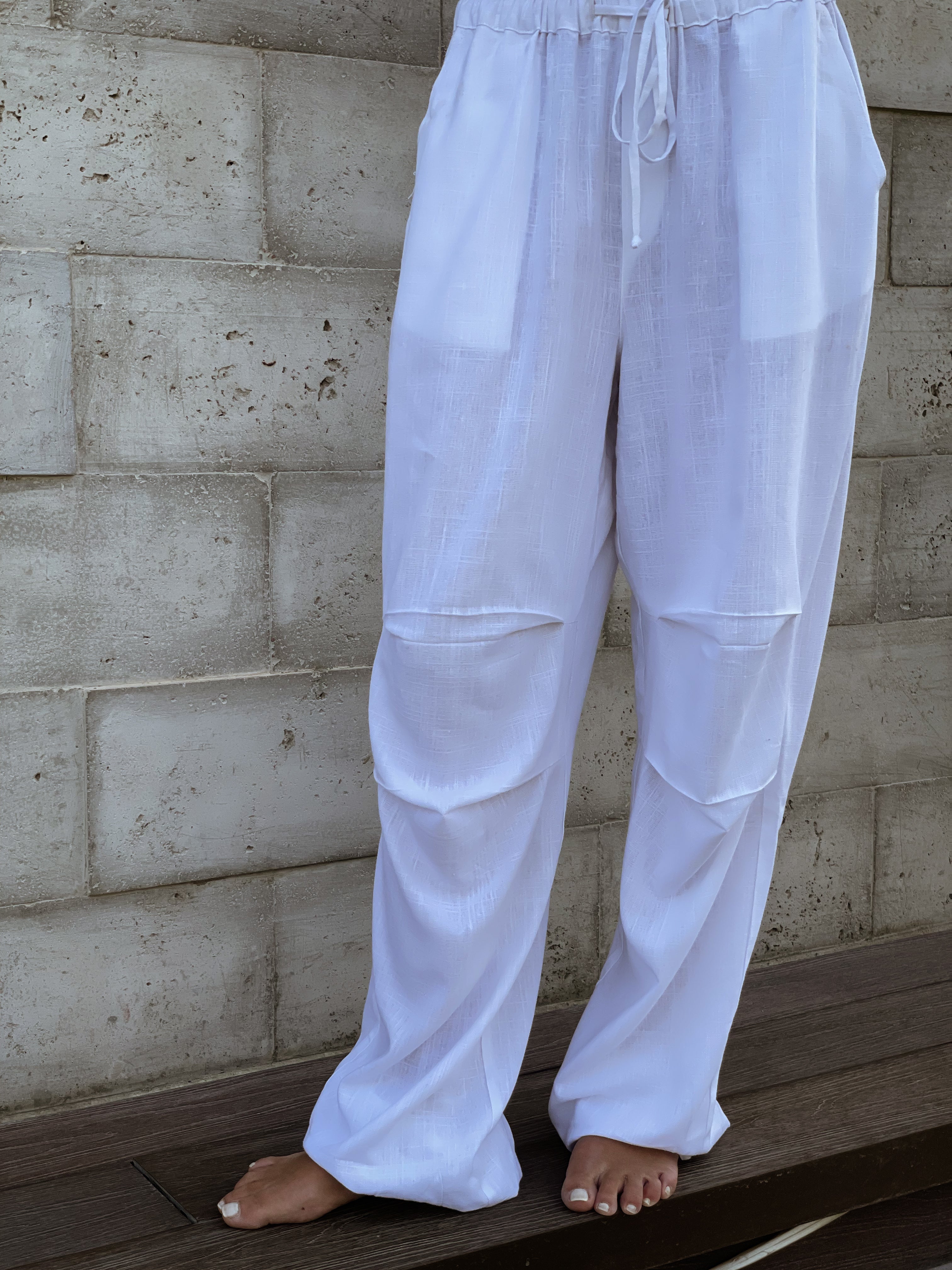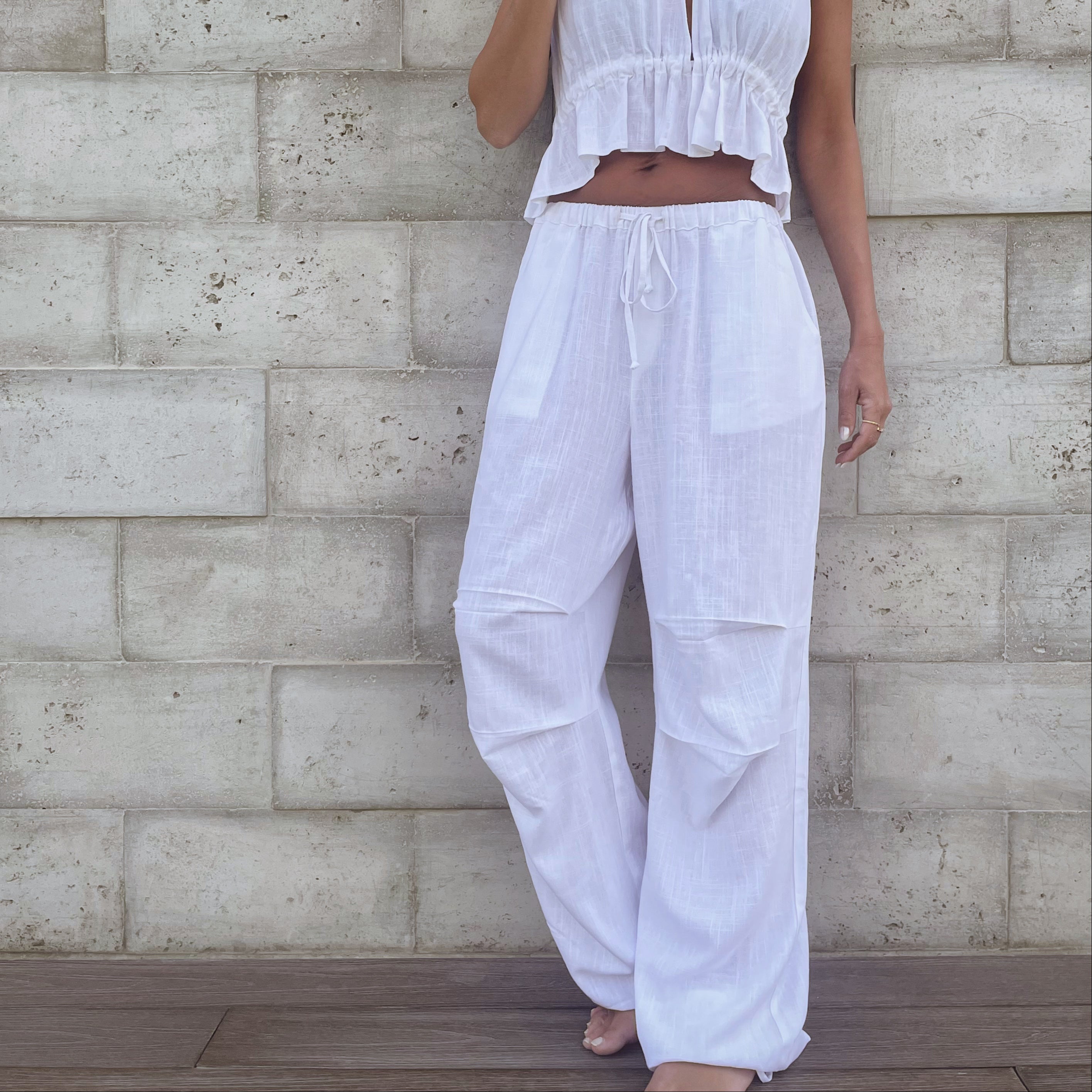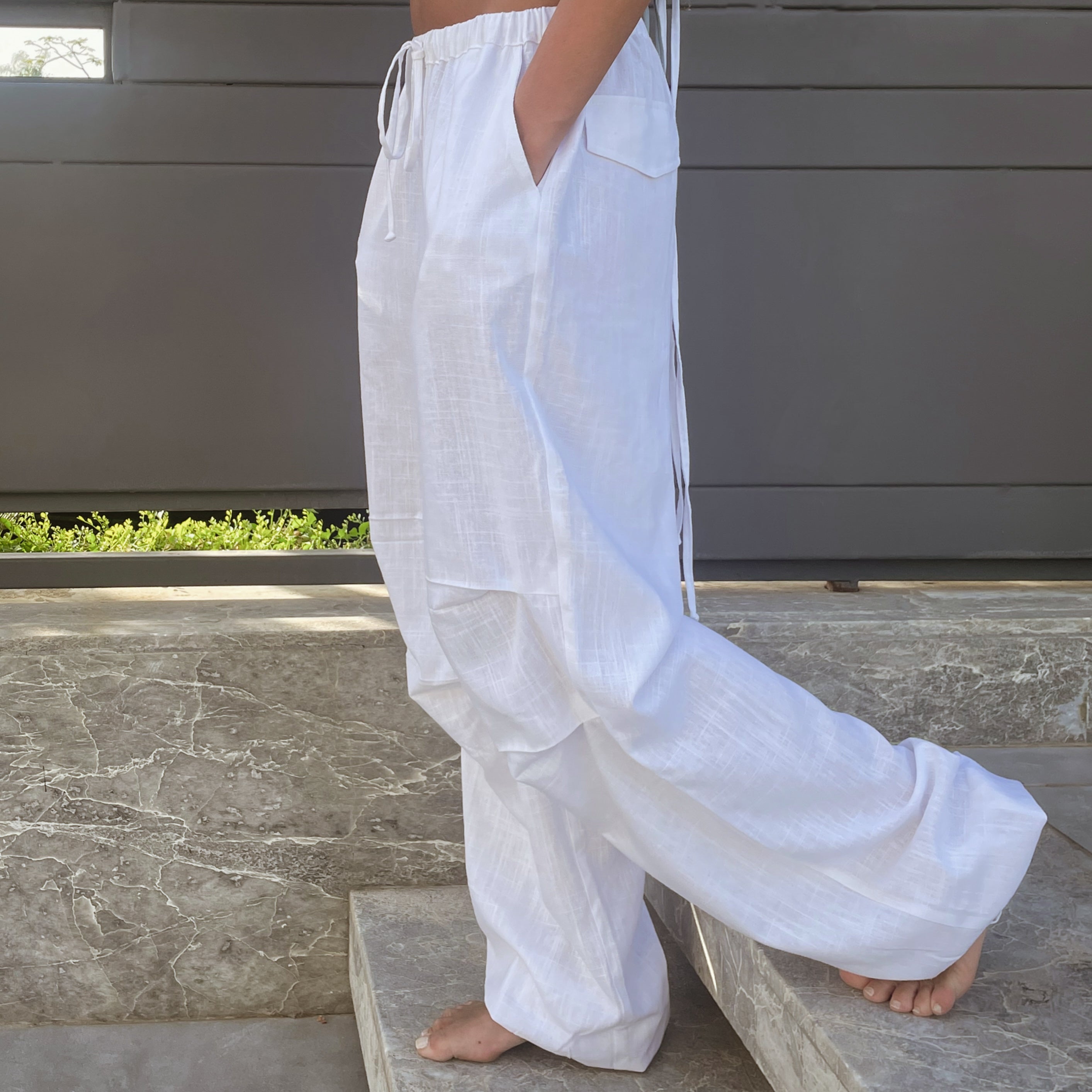 Crafted from airy linen, these relaxed-fit pants feature a regular rise, practical pockets, a drawstring waistband, and adjustable cuffs for a customizable silhouette. Designed for comfort and movement, they’re your warm-weather essential.