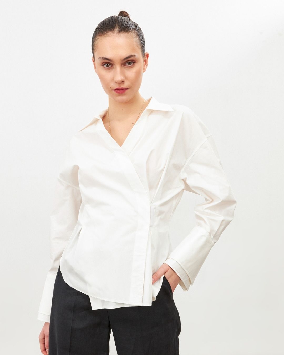 Elevate your wardrobe with the Asymmetric Closure Long Sleeve Shirt—crafted for the modern woman who embraces both elegance and edge.