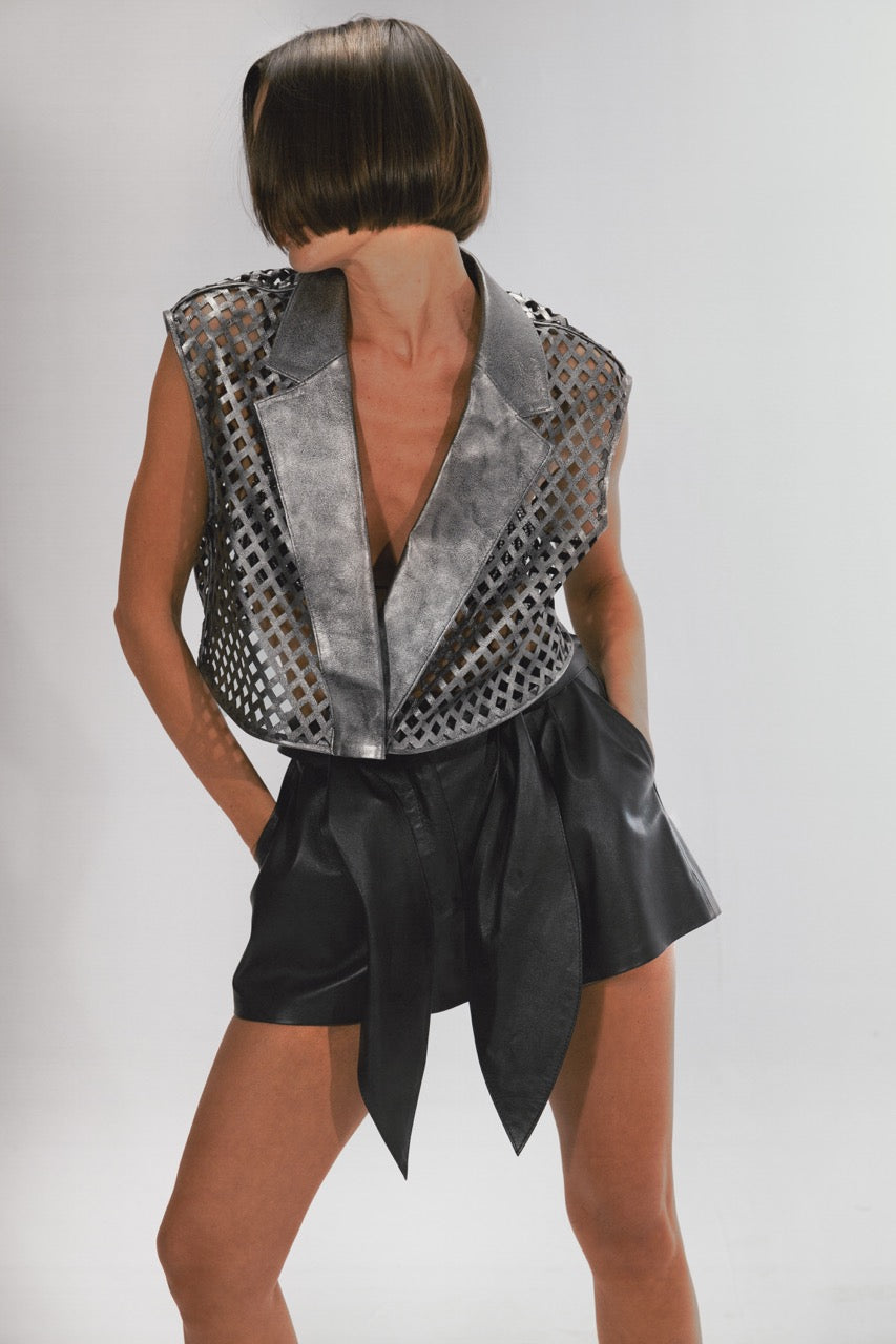 The Kayden Leather vest exudes luxury and sophistication. The laser–cut detailing adds a touch of modernity and intricacy, creating a captivating visual texture that sets apart from ordinary vests.