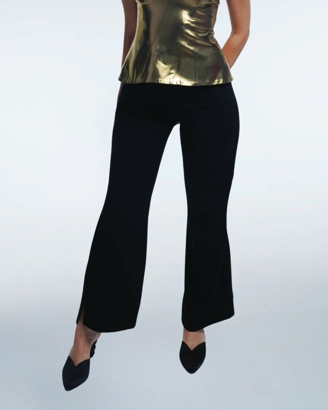 Elevate your wardrobe with these effortlessly chic black pants, crafted from luxurious crepe material. Designed for the modern woman who values understated elegance, these pants feature a subtle side slit that adds just the right amount of edge to your look. The sleek silhouette flatters your figure, while the lightweight fabric ensures all–day comfort.