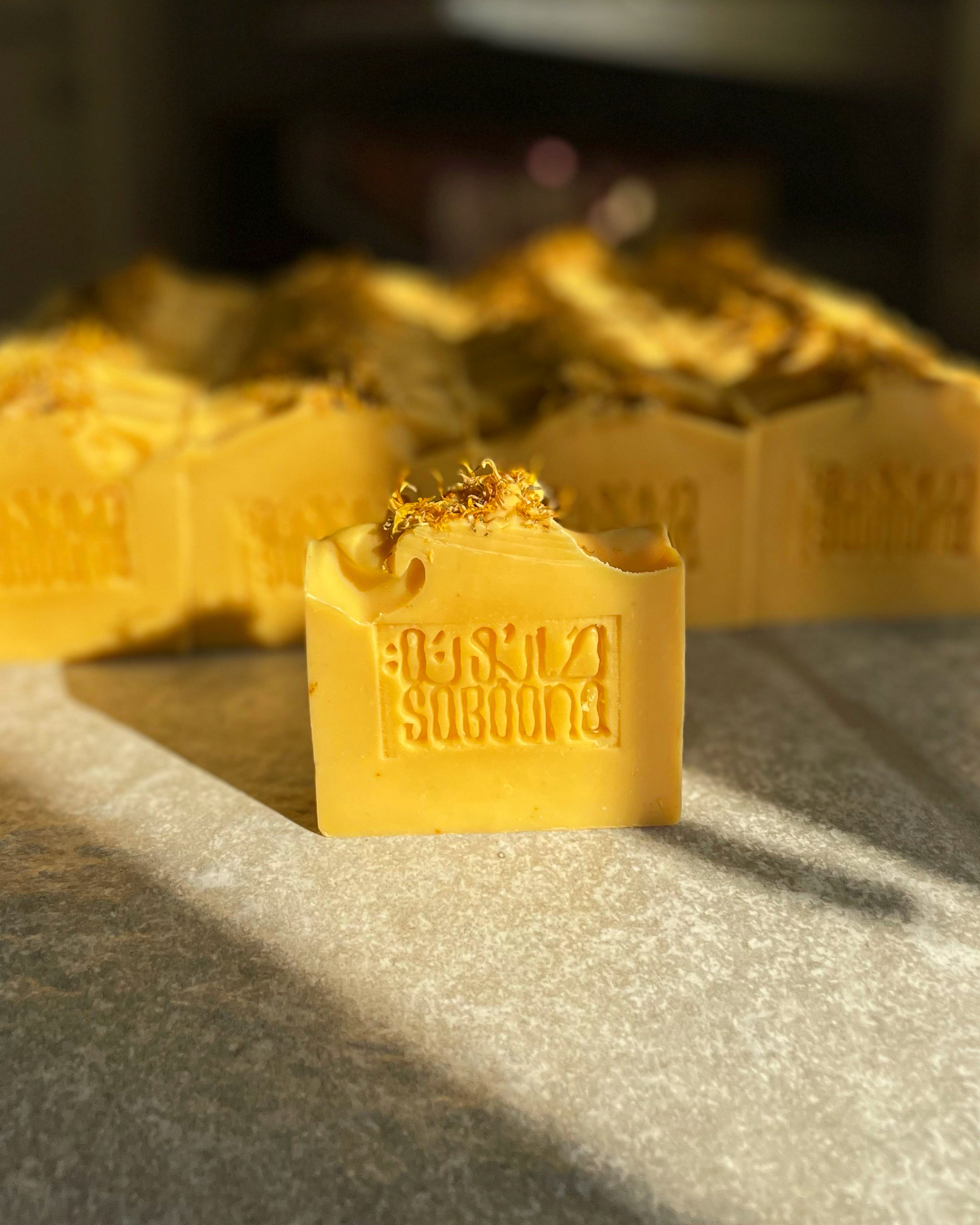 These homemade soaps are regionally sourced and made with minimally processed materials and reduced use of plastics, non–essential wrappers, colorants, and artificial scents.