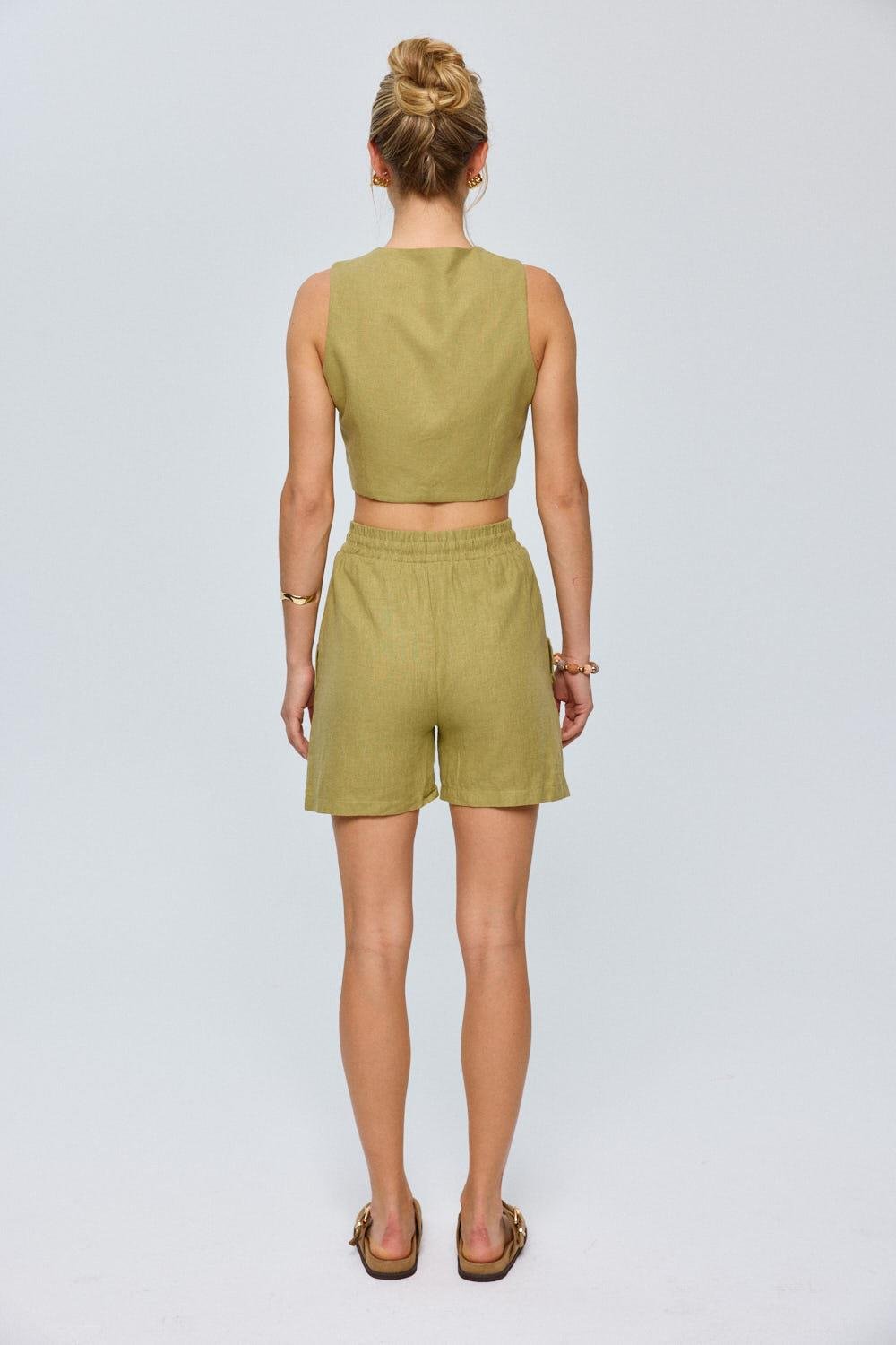A breezy cotton co-ord set made for effortless summer styling. The tailored vest features button-down detailing, while the high-waisted shorts offer a full fit with straight-cut legs, soft lining, and functional front pockets. Easy to wear together or style separately.