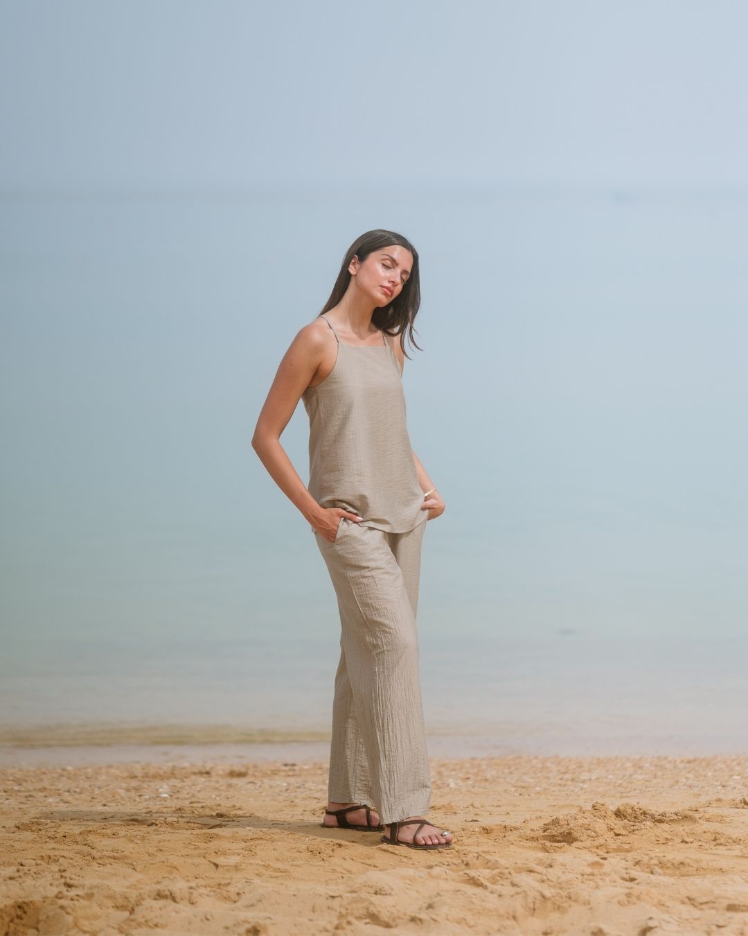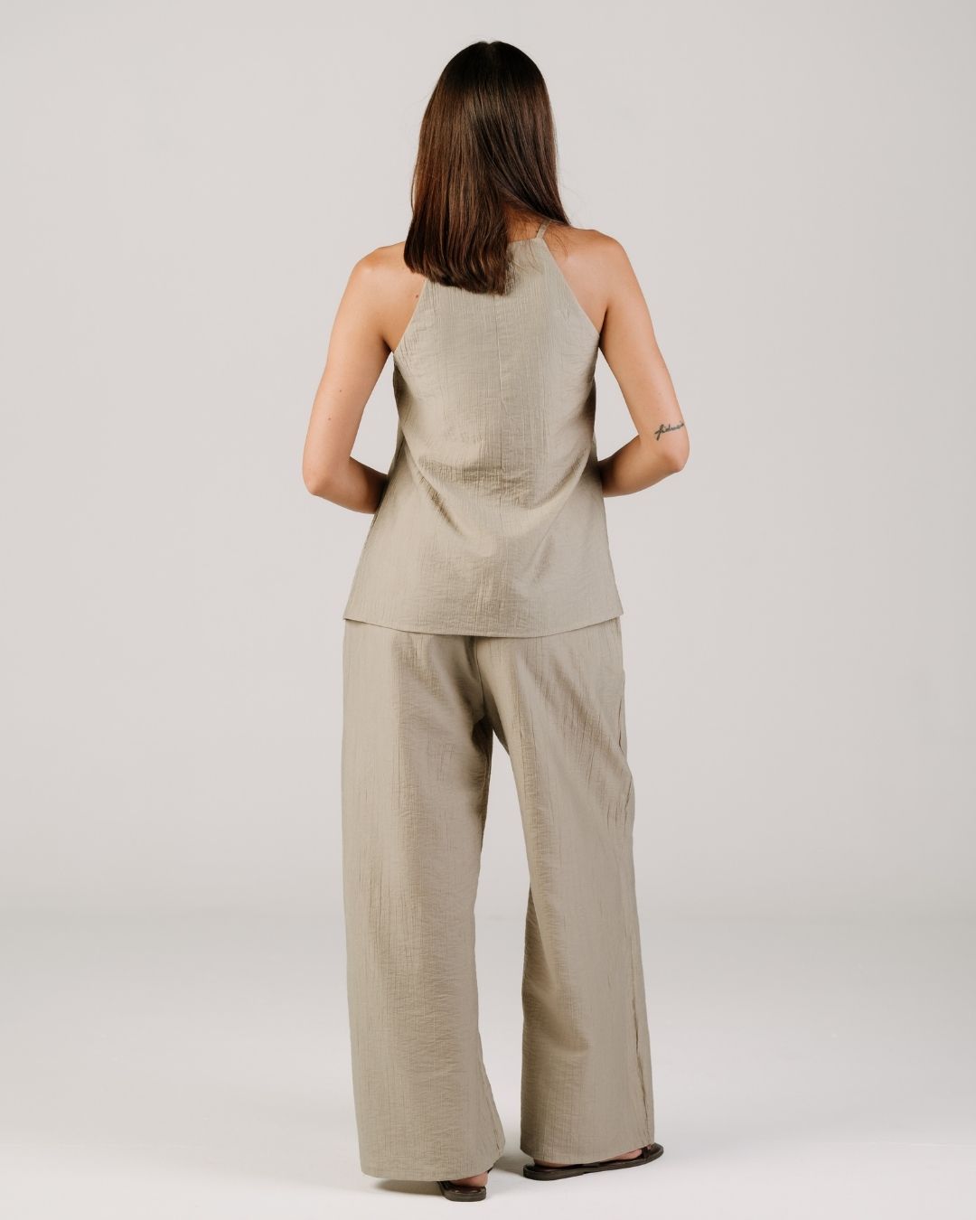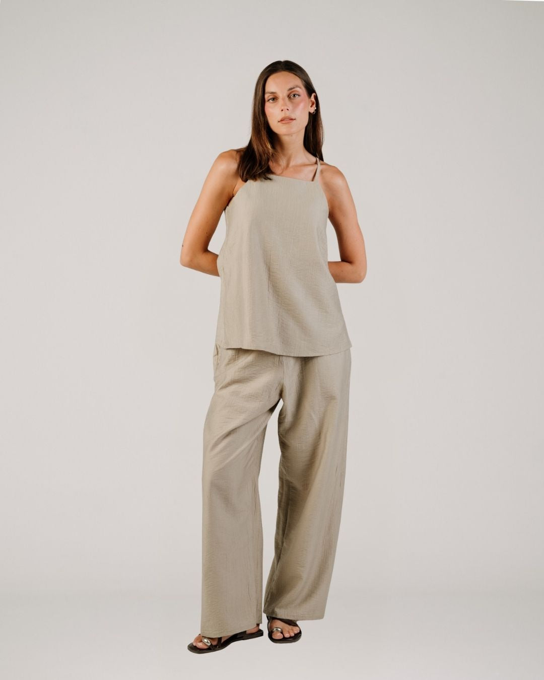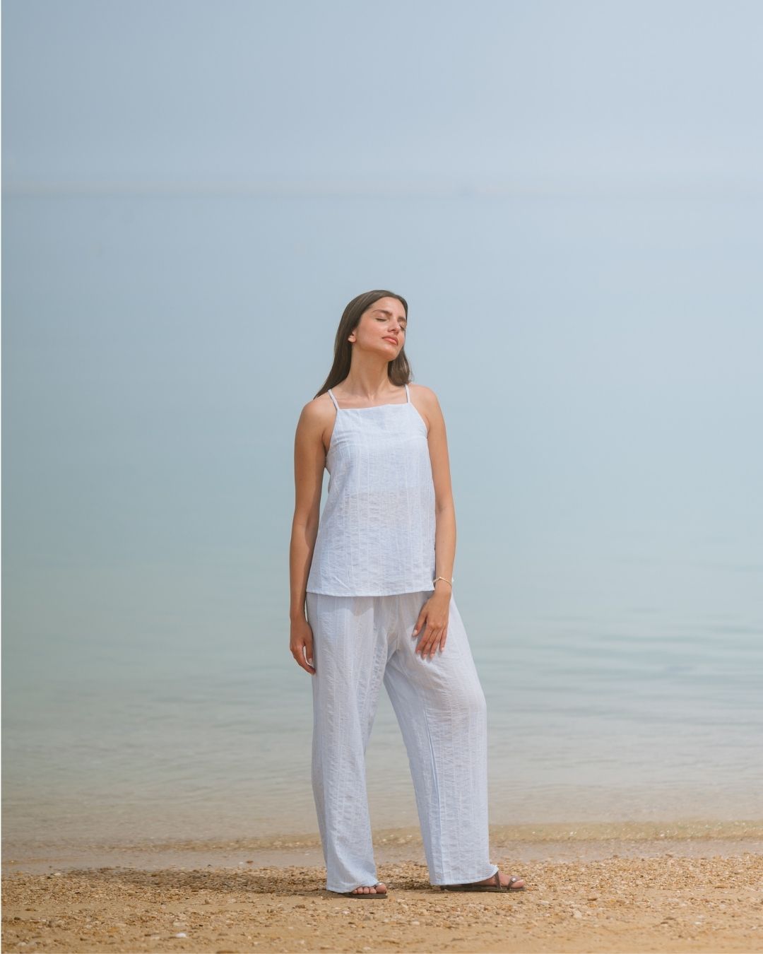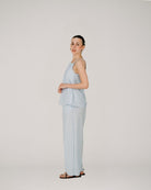 Relaxed-fit pants in sky blue. Made from soft textured cotton. Designed with an elastic waistband and side pockets for everyday comfort and flow. Light and breathable — created for hot summer days.