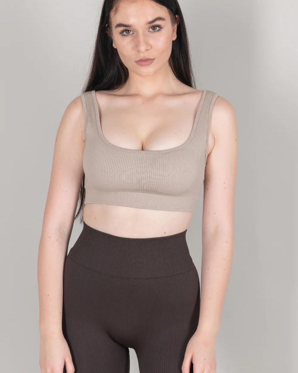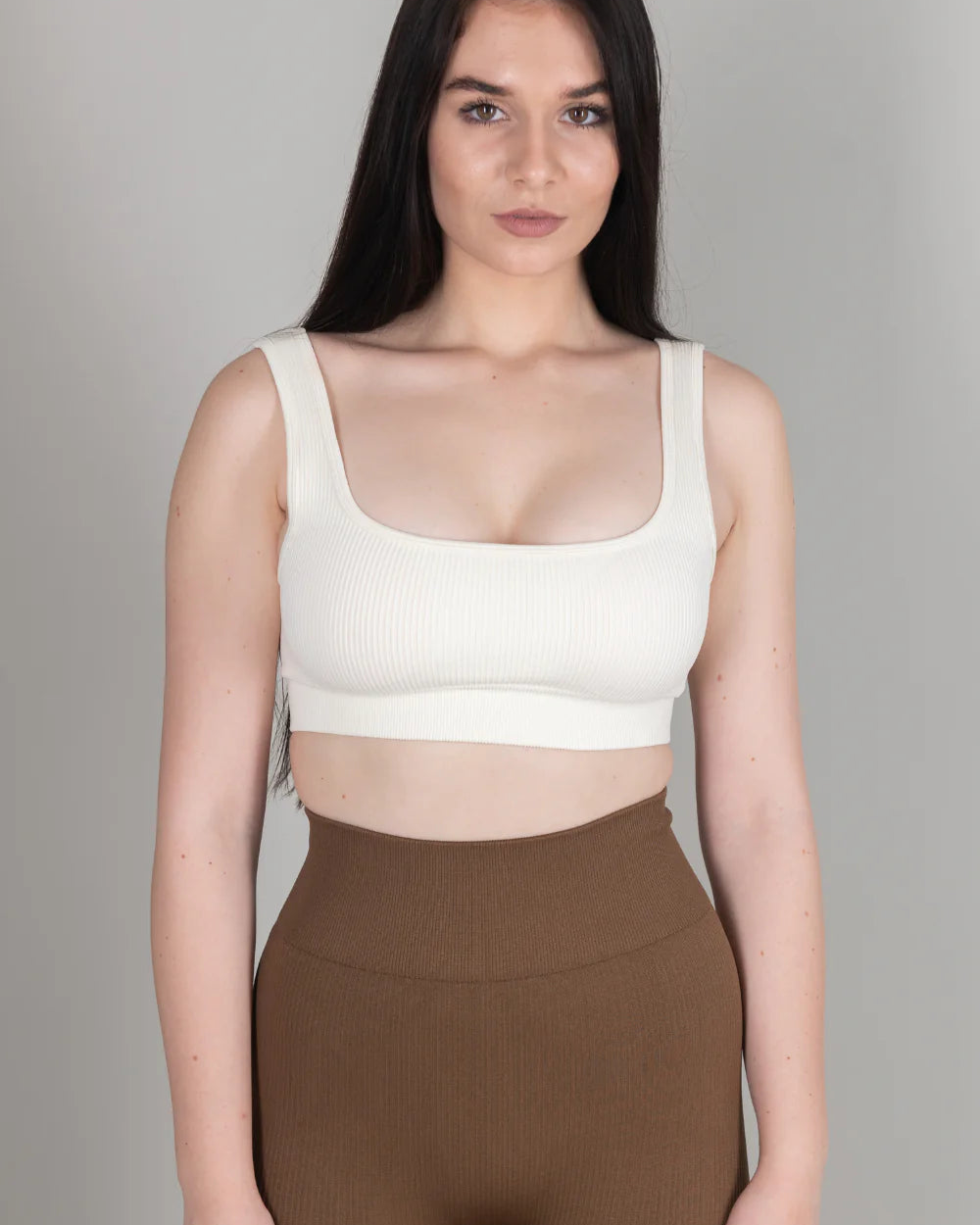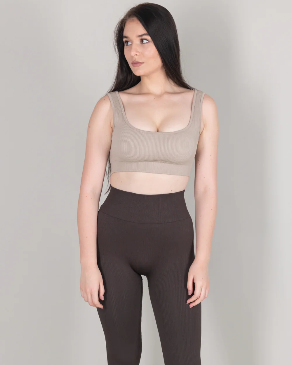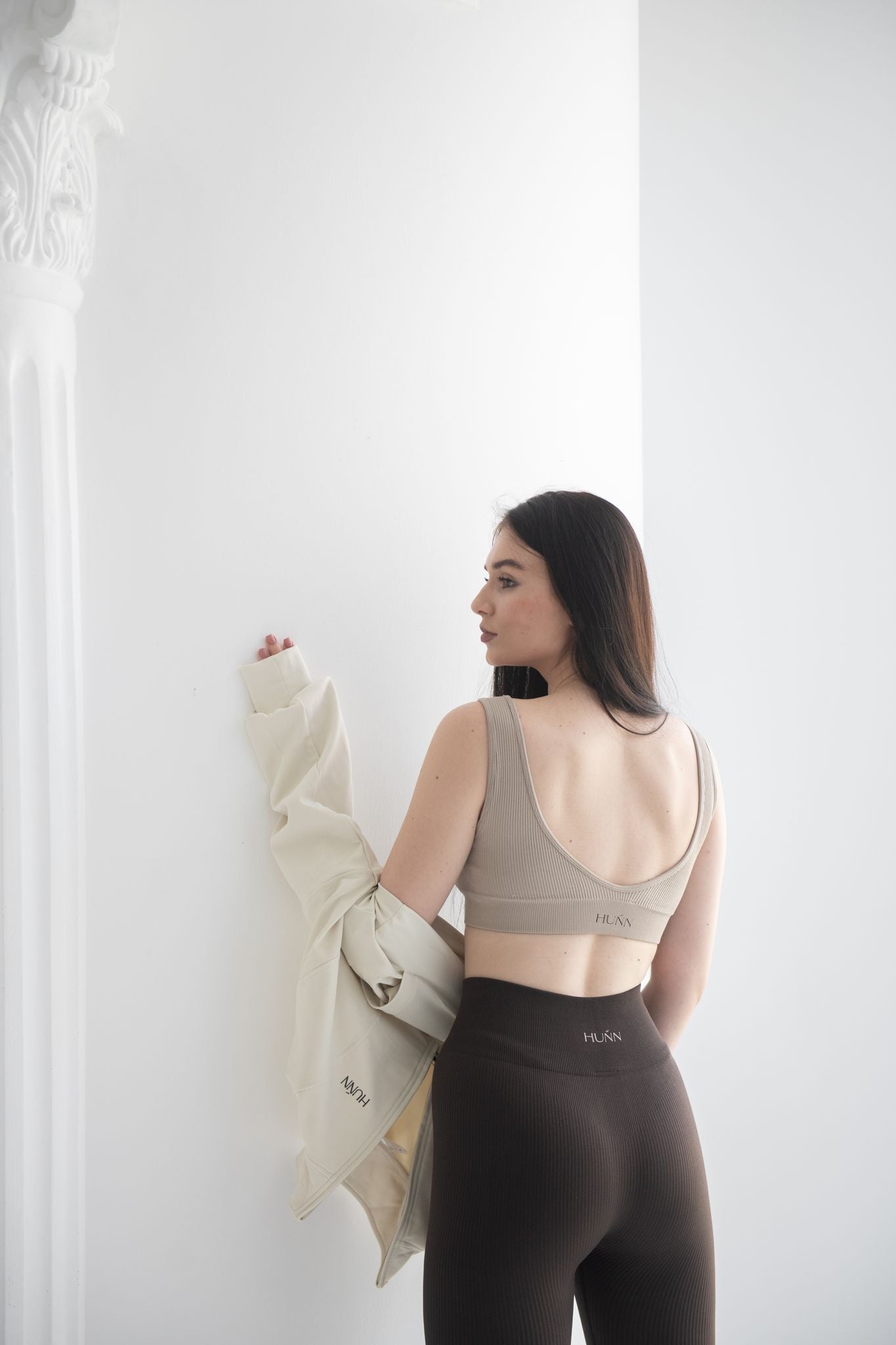 Your classic sports bra with a twist. Made with buttery soft ribbed fabric, offers medium support and features a flattering V cut open back.