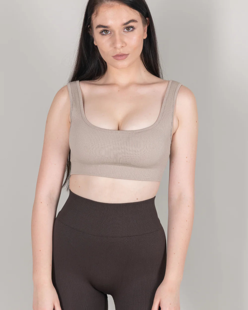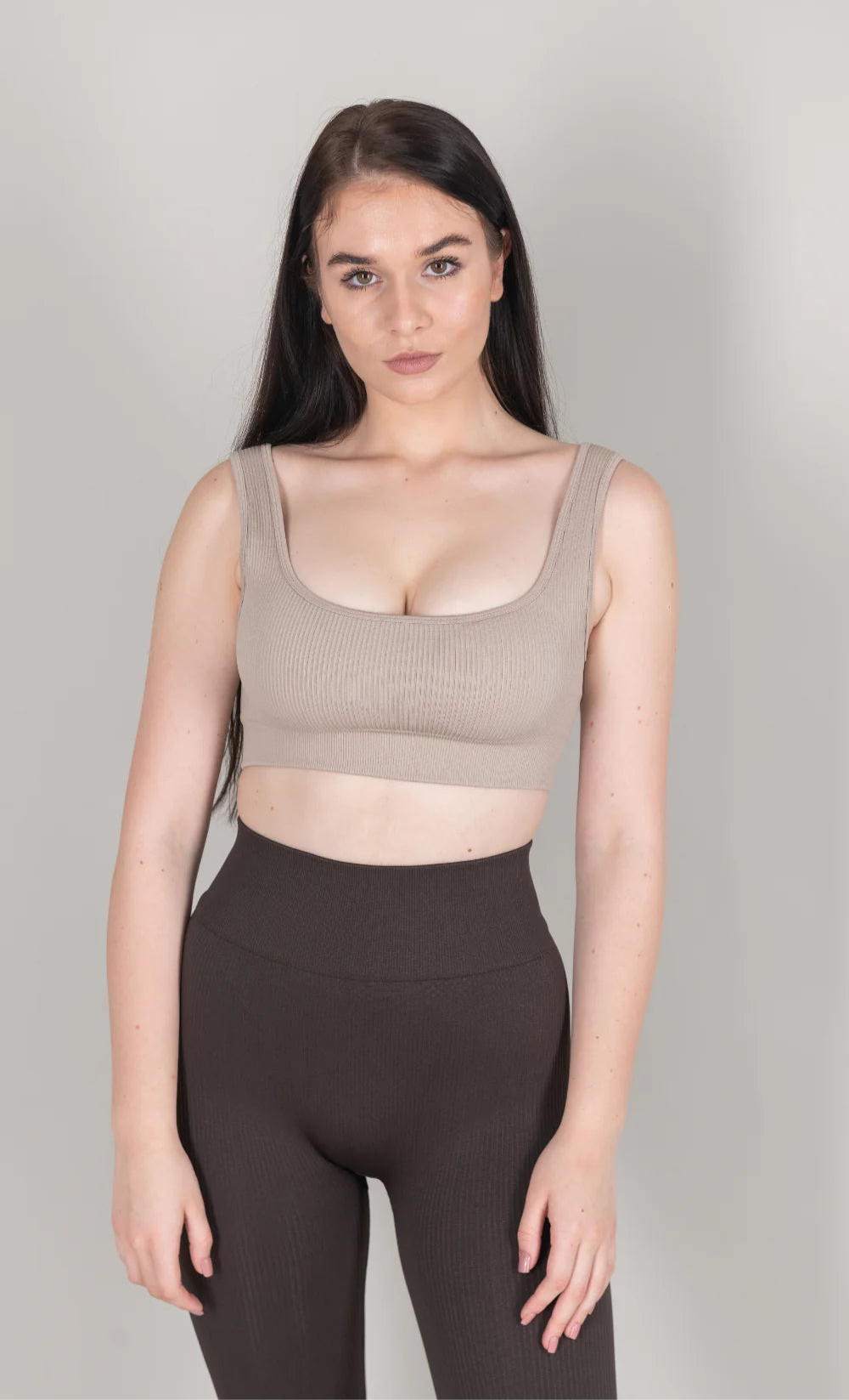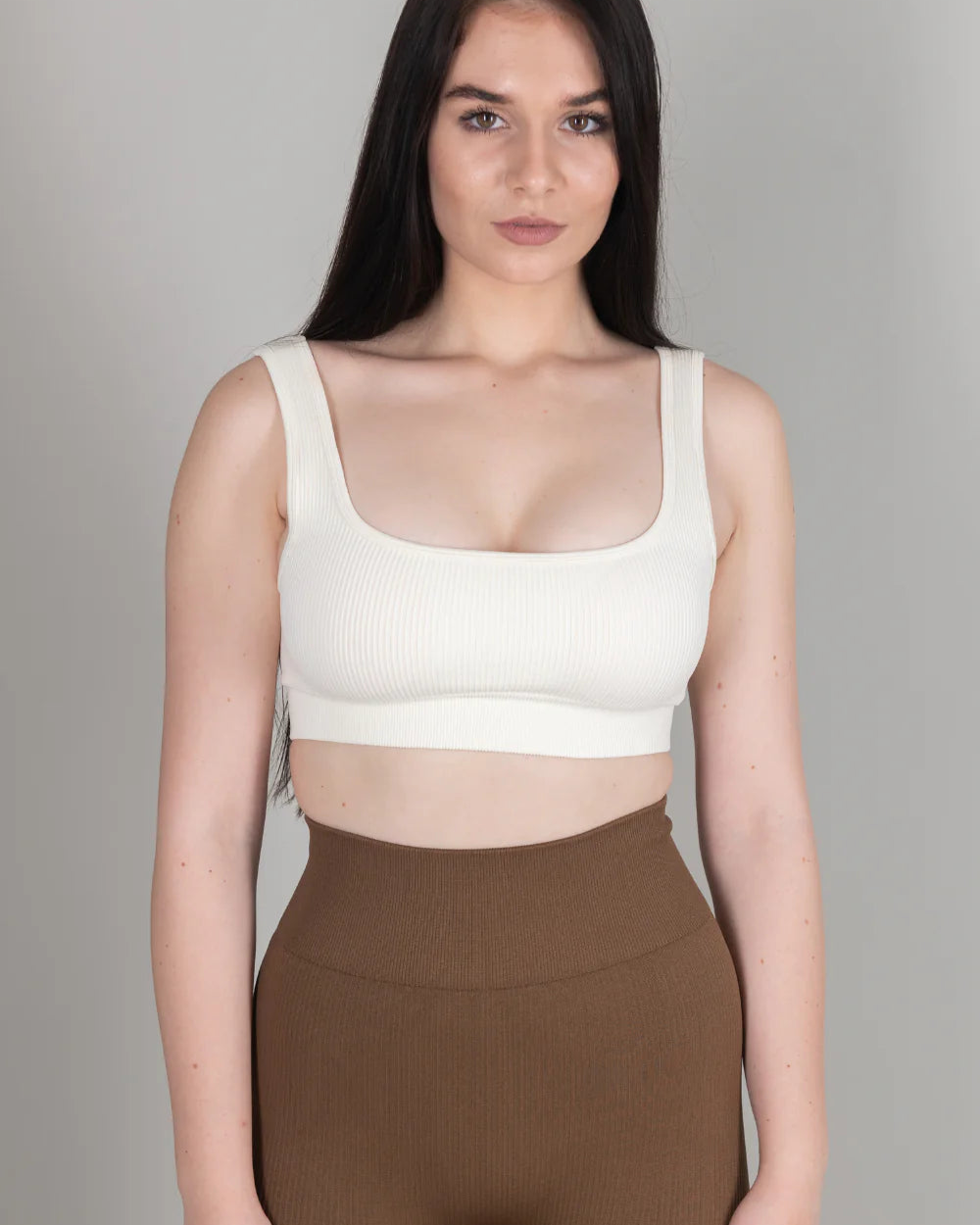 Your classic sports bra with a twist. Made with buttery soft ribbed fabric, offers medium support and features a flattering V cut open back.