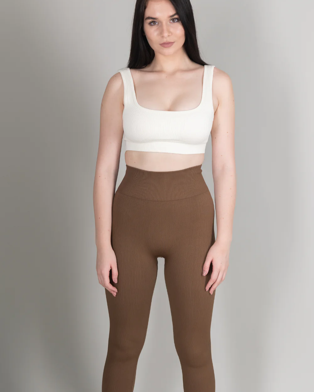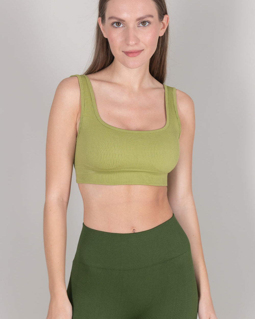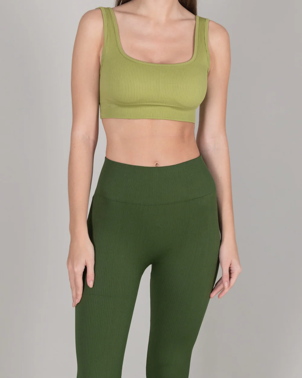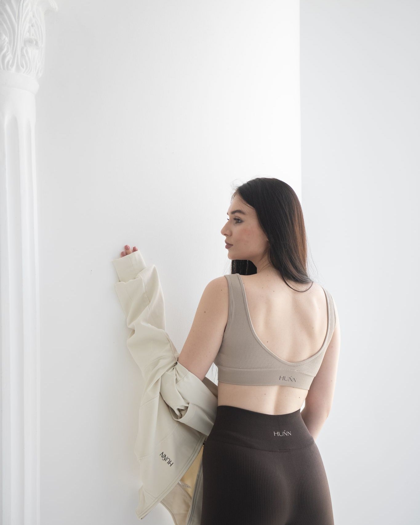 Your classic sports bra with a twist. Made with buttery soft ribbed fabric, offers medium support and features a flattering V cut open back.