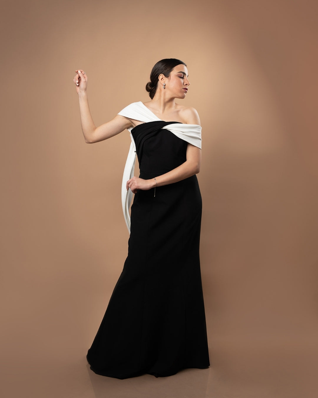 Black Dress with White Off-Shoulder Cape