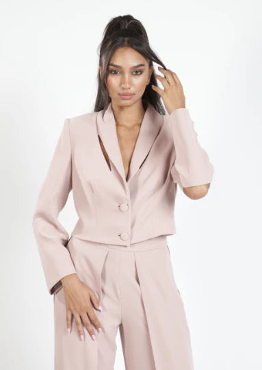 Refine your wardrobe with our cropped nude jacket, tailored to perfection with a structured silhouette and clean lines. Featuring a sharp lapel, double-button closure, and a flattering cropped cut, this piece brings effortless polish to any outfit.