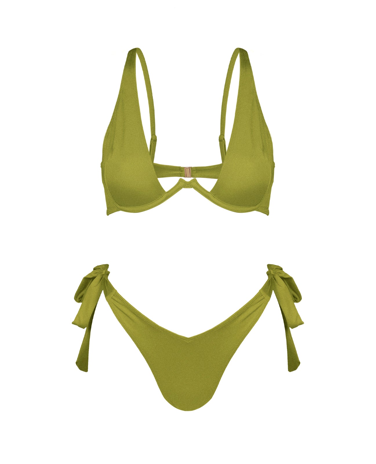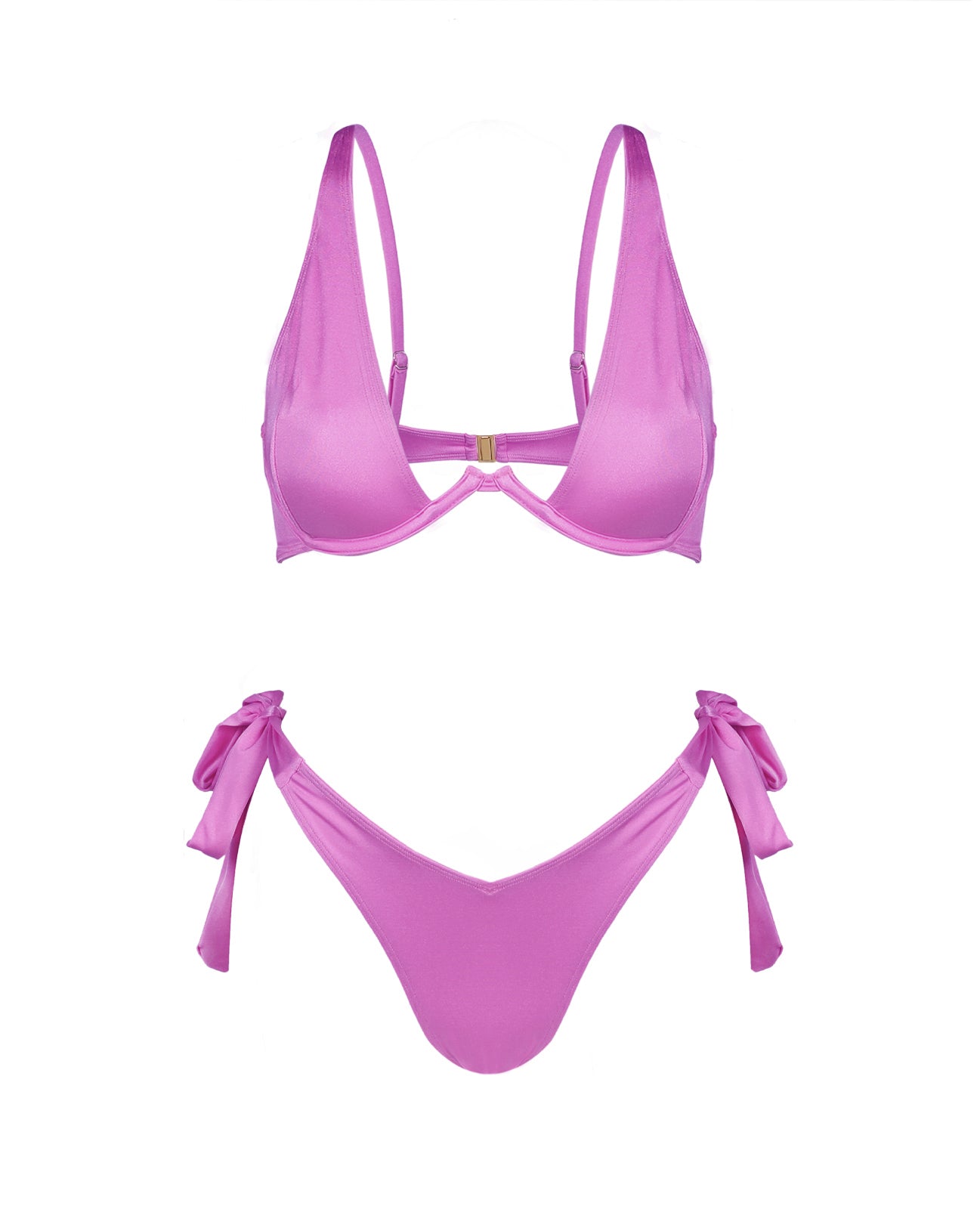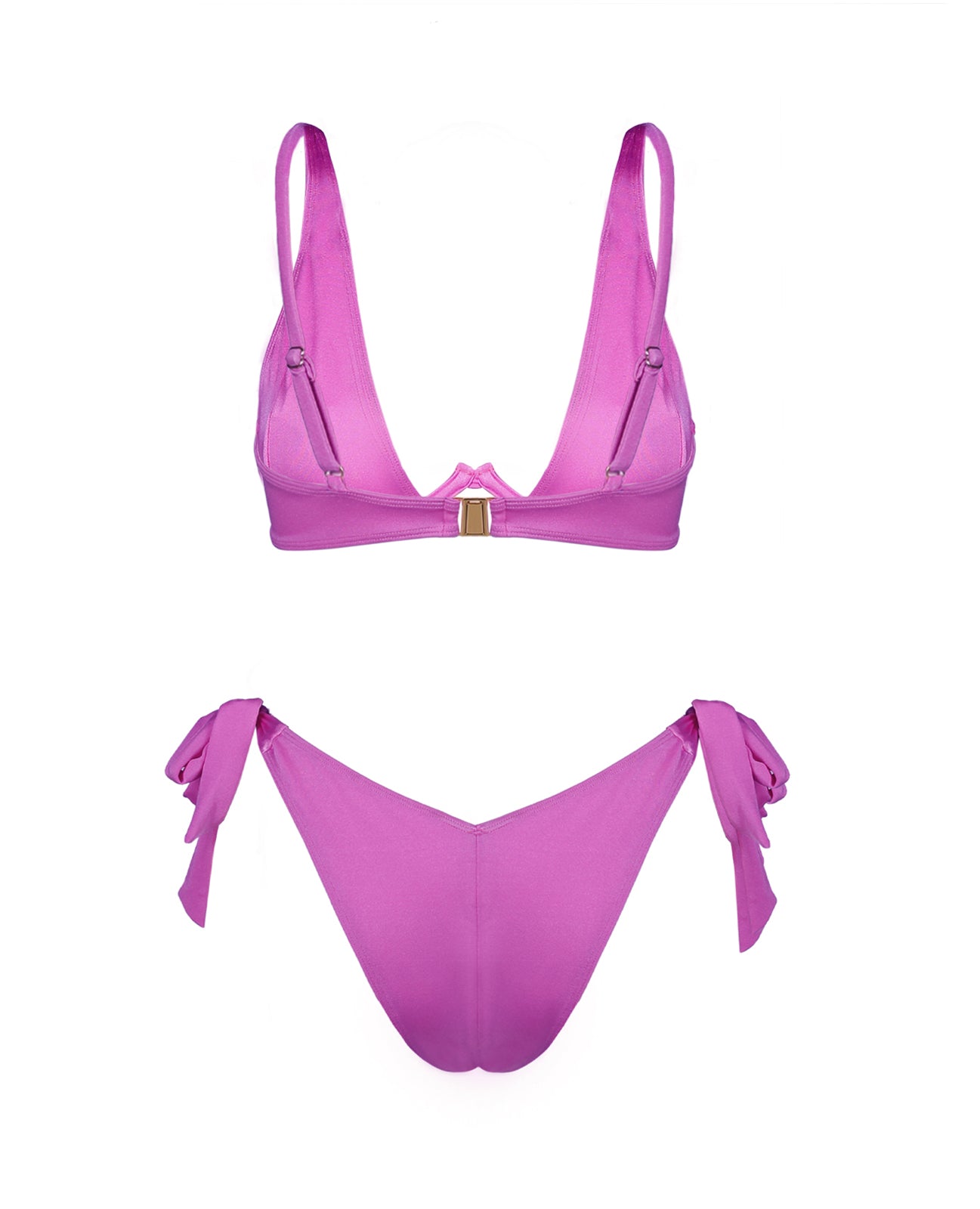 Flirtatious, sweet and sultry, the Ella bikini is definitely a staple piece that oozes charisma, style and glamour. Slip into one of Cherina Beachwear’s hottest design for this season featuring a plunging detail in the underwire on this top that gives the Ella set a unique and sophisticated look. With its over the shoulders adjustable straps this top is designed to flatters the bust and to provide the perfect push-ups, fit and support. The Ella bottom features a V-cut shape, medium coverage and wide side ties to complement the look.
