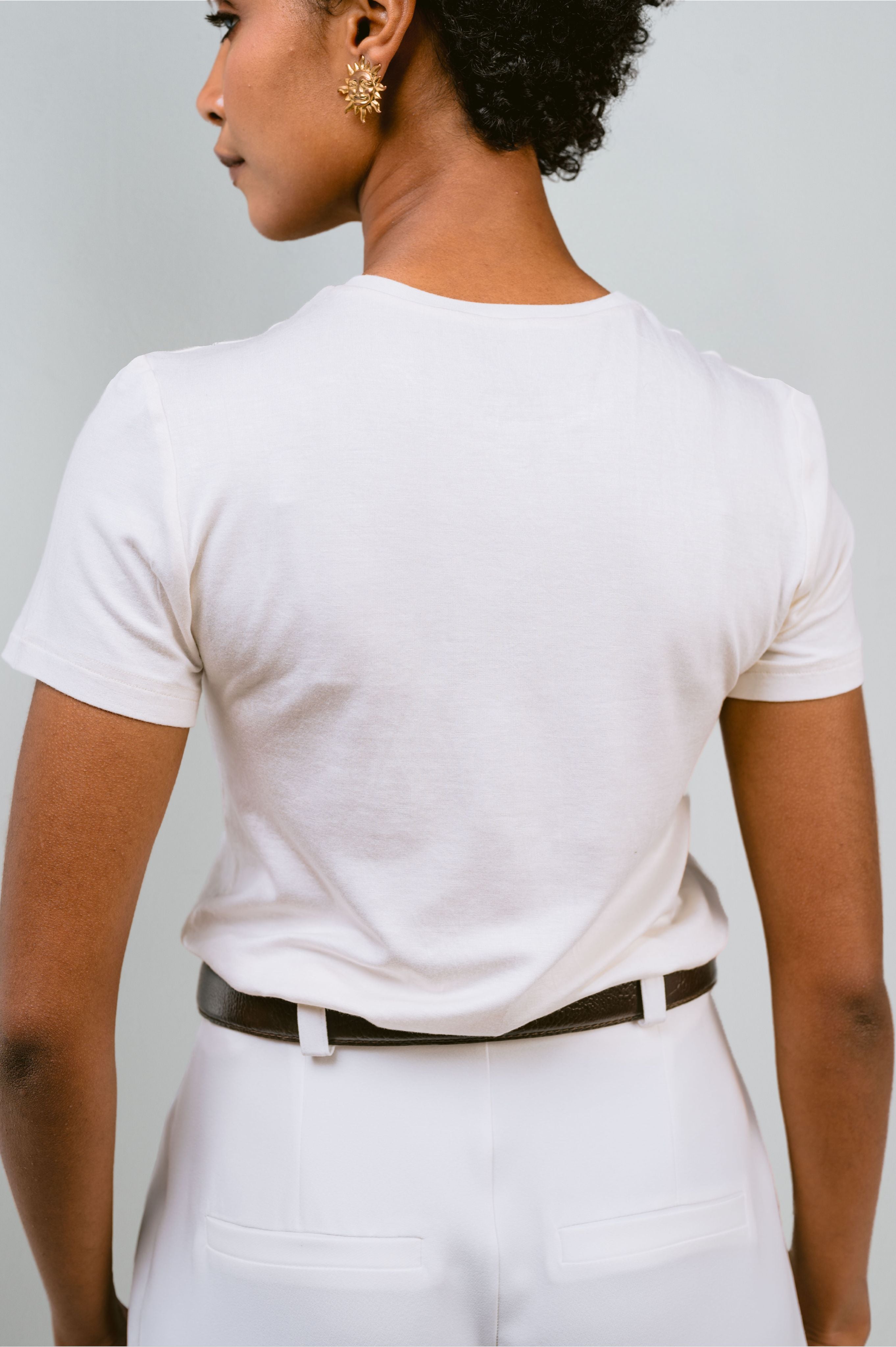 A must-have addition to every woman's wardrobe: our essential basic t-shirt. Created from the softest and lightest viscose fabric, you'll be delighted by the delicate touch and gentle drape that enhances your silhouette.